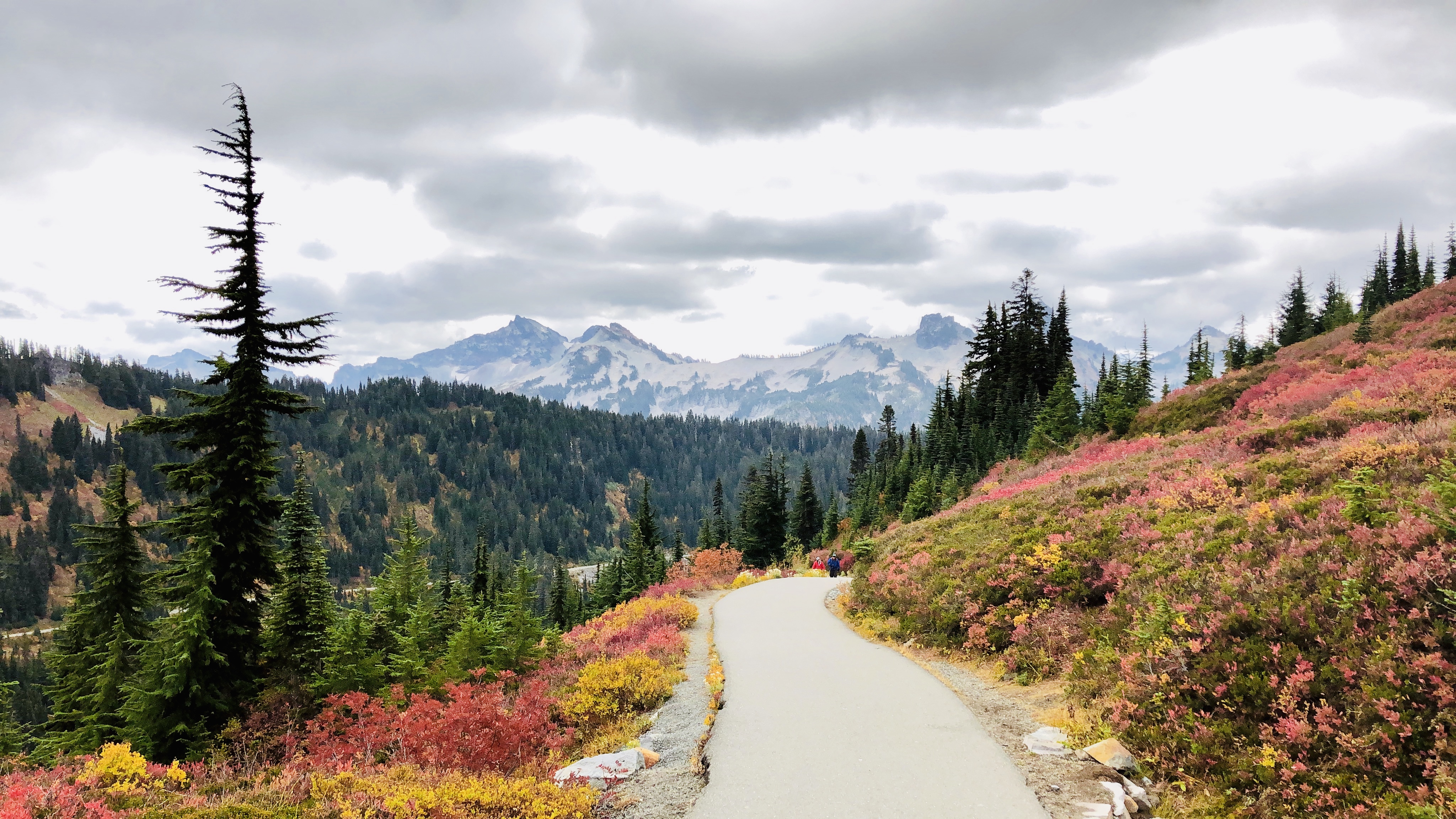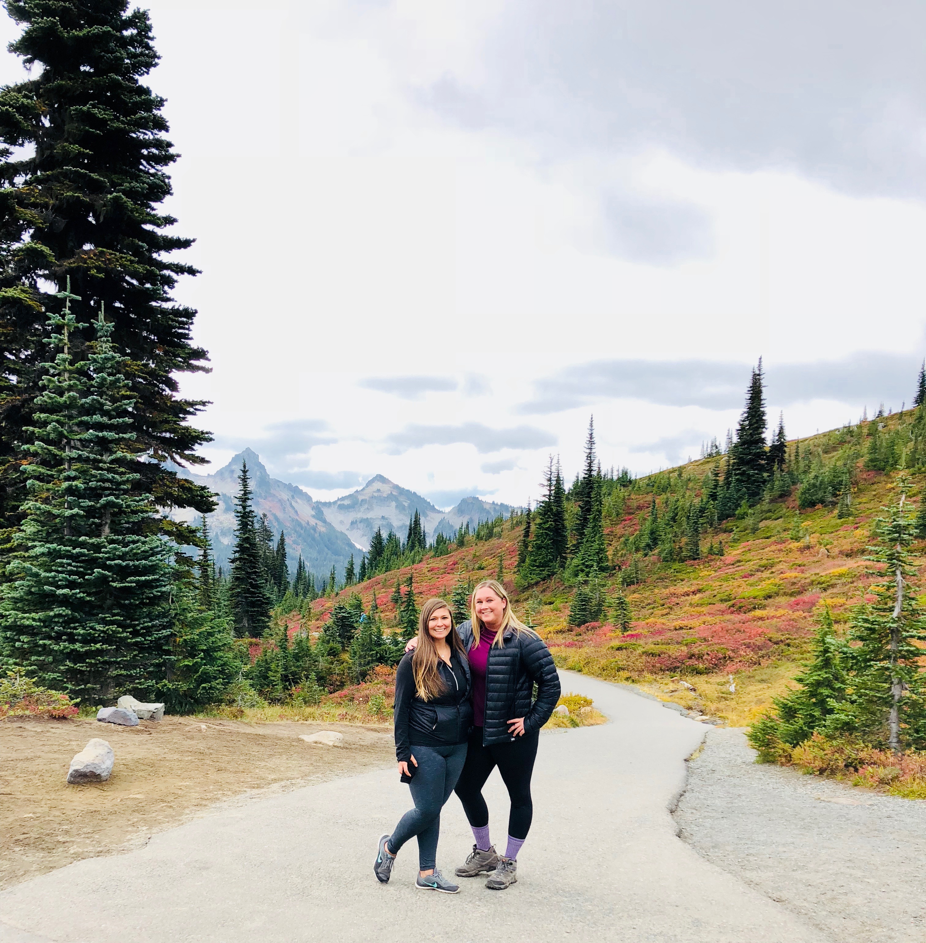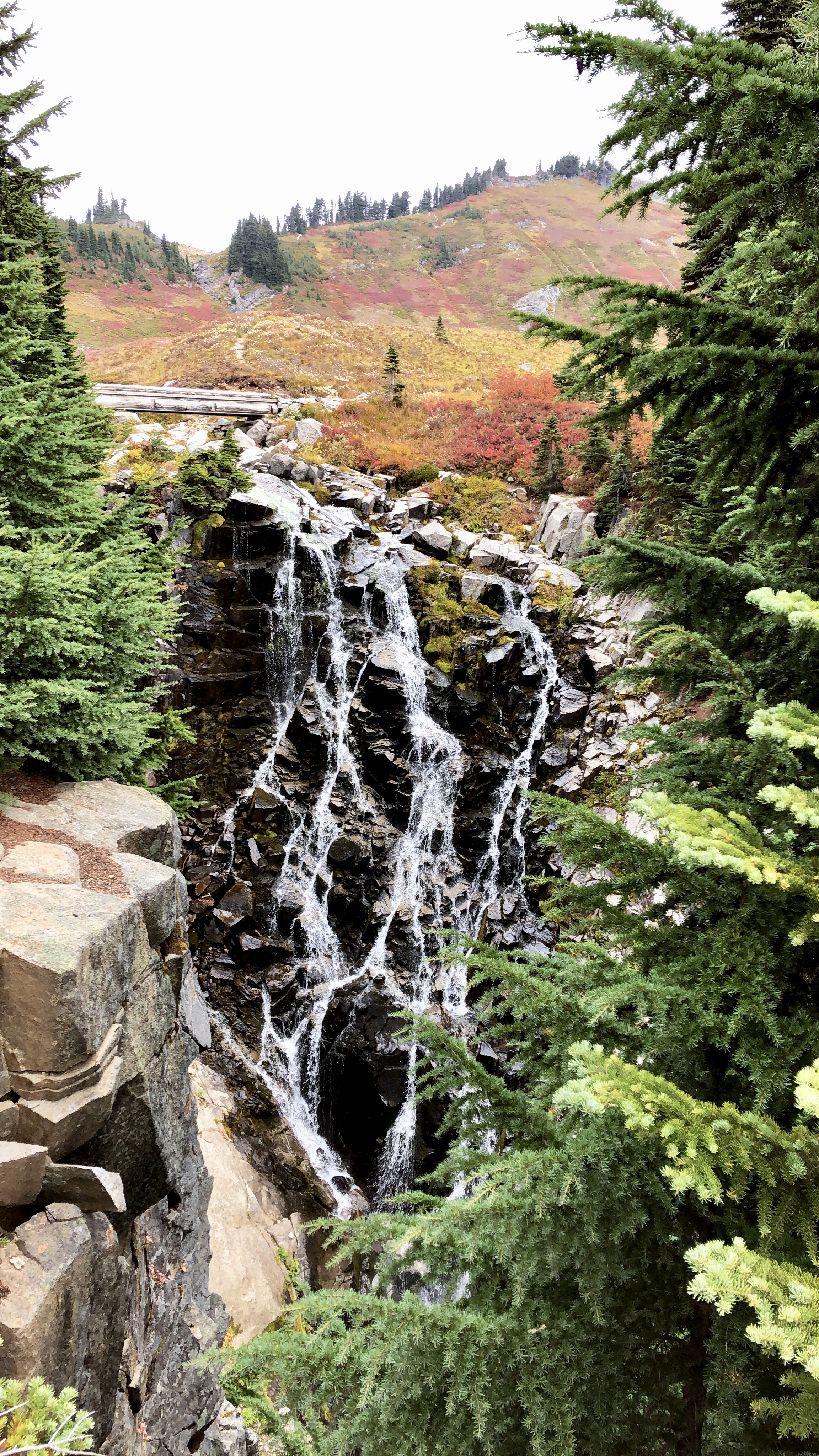 Next, we drove along the scenic route up to the Paradise Visitor’s Center, and were welcomed by an actual fall paradise. We debated back and forth about going on a hike up there, and ultimately decided to. We hiked to Myrtle Falls, but could only make it a few steps at a time before stopping to take pictures of the fall foliage! We seemed to catch the fall colors at their peak, and it was like nothing I had ever seen before. Then, to top it all off, on our way back down from Myrtle Falls, we saw a black bear!! This was the first black bear I’d seen in the wild, and just felt like the cherry on top of a perfect day.