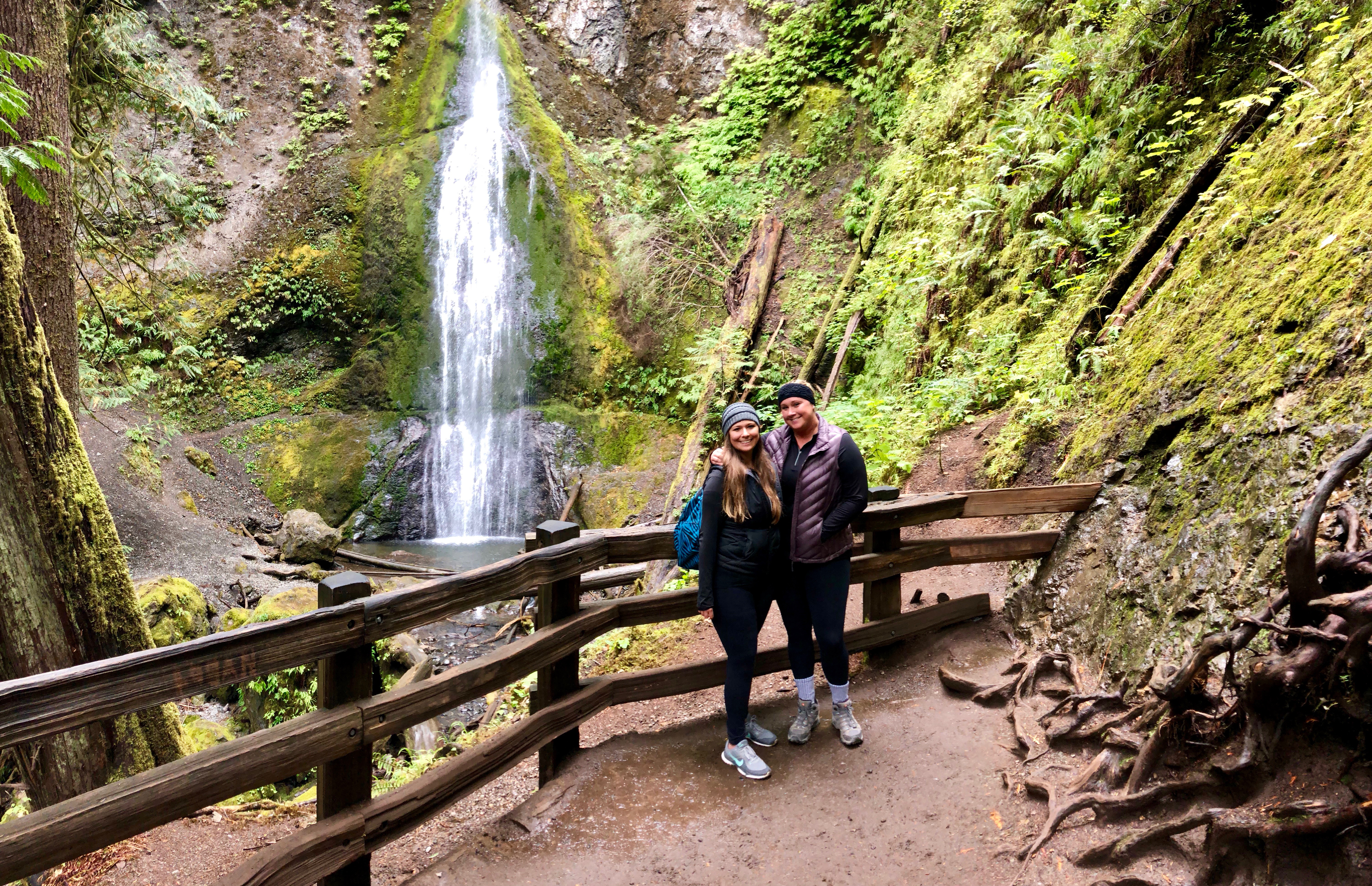 - Marymere Falls/Lake Crescent. This hike is located near the shores of Lake Crescent. It is roughly 2 miles long and walks you along the creek, across a bridge, and up some stairs to two different view-points of the 90-foot waterfall. The lush fern, forest atmosphere, fall colors, and waterfall made it a fun hike to get out and stretch our legs.