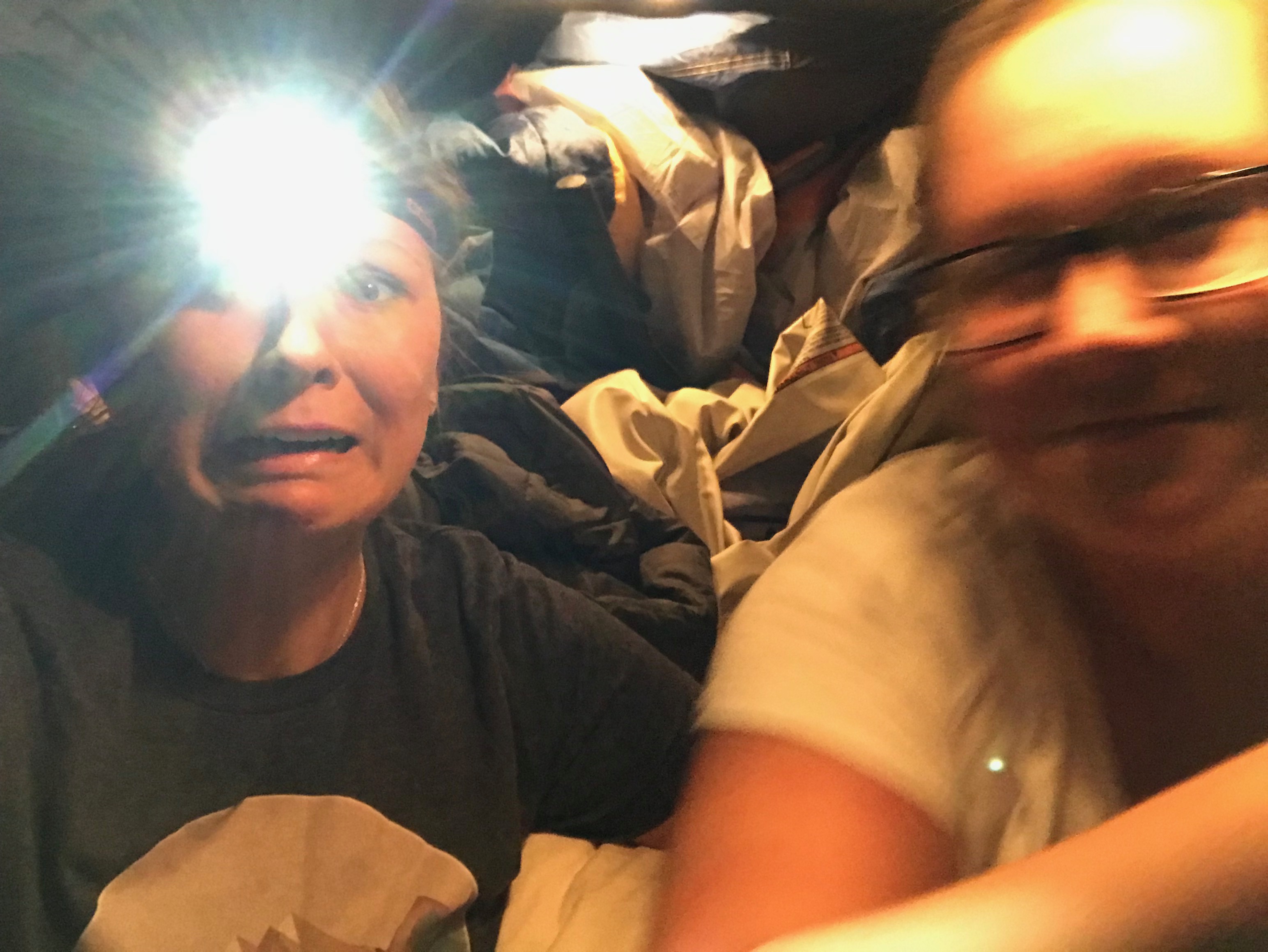 We found a hotel, checked in, and made it to our room, only to hear what sounded like a loud TV on in our room… Not really knowing what to do, we walked back down to the front desk to see if they had double booked our room. After some back and forth, the front desk guy agreed to go check out the situation. He knocked on the door, only to have an angry, naked man answer!! The front desk guy somehow held it together, while we all but lost our sh*t. We eventually got set up with a new room, and I’m pretty sure I fell asleep chuckling that night.