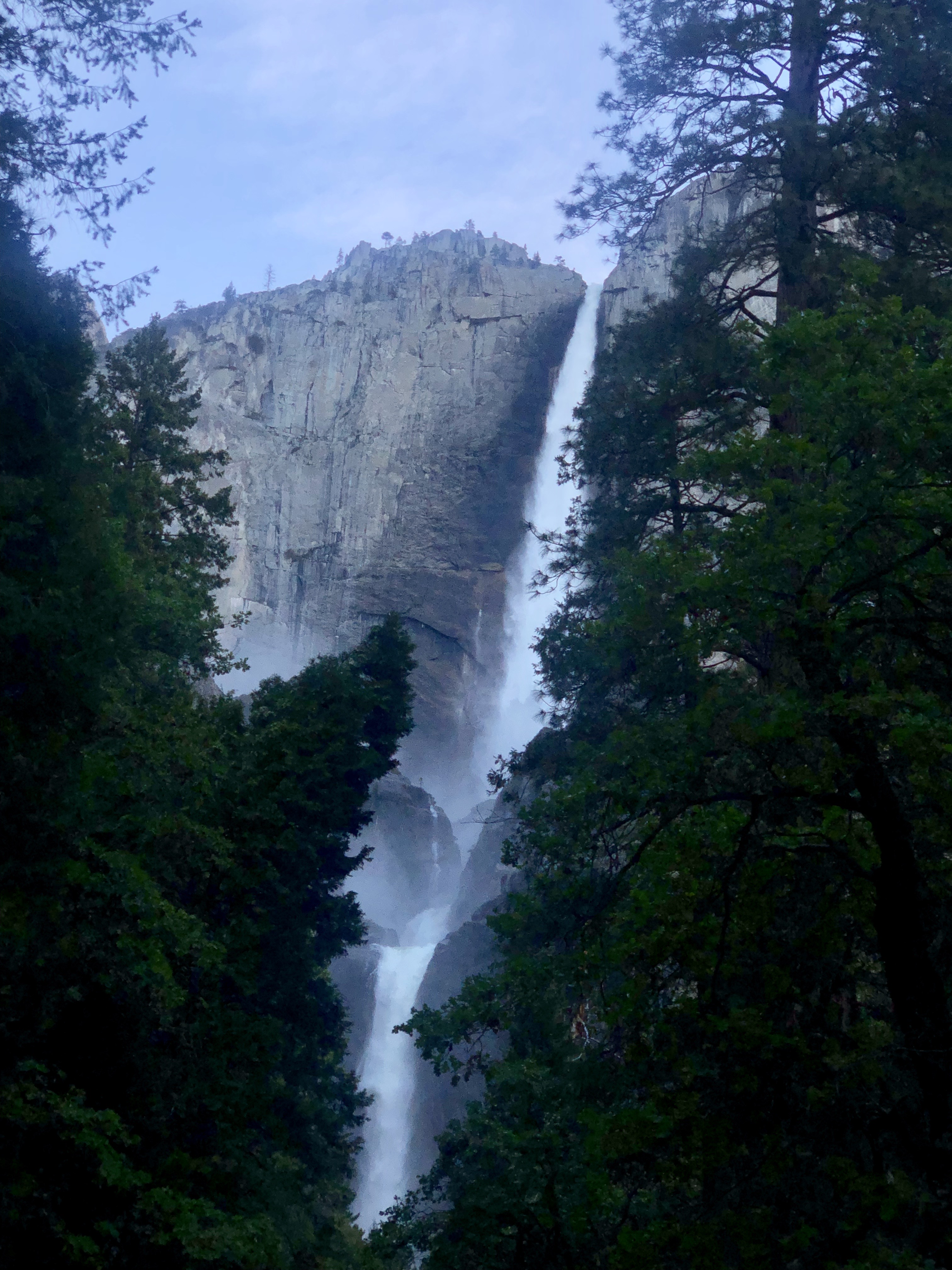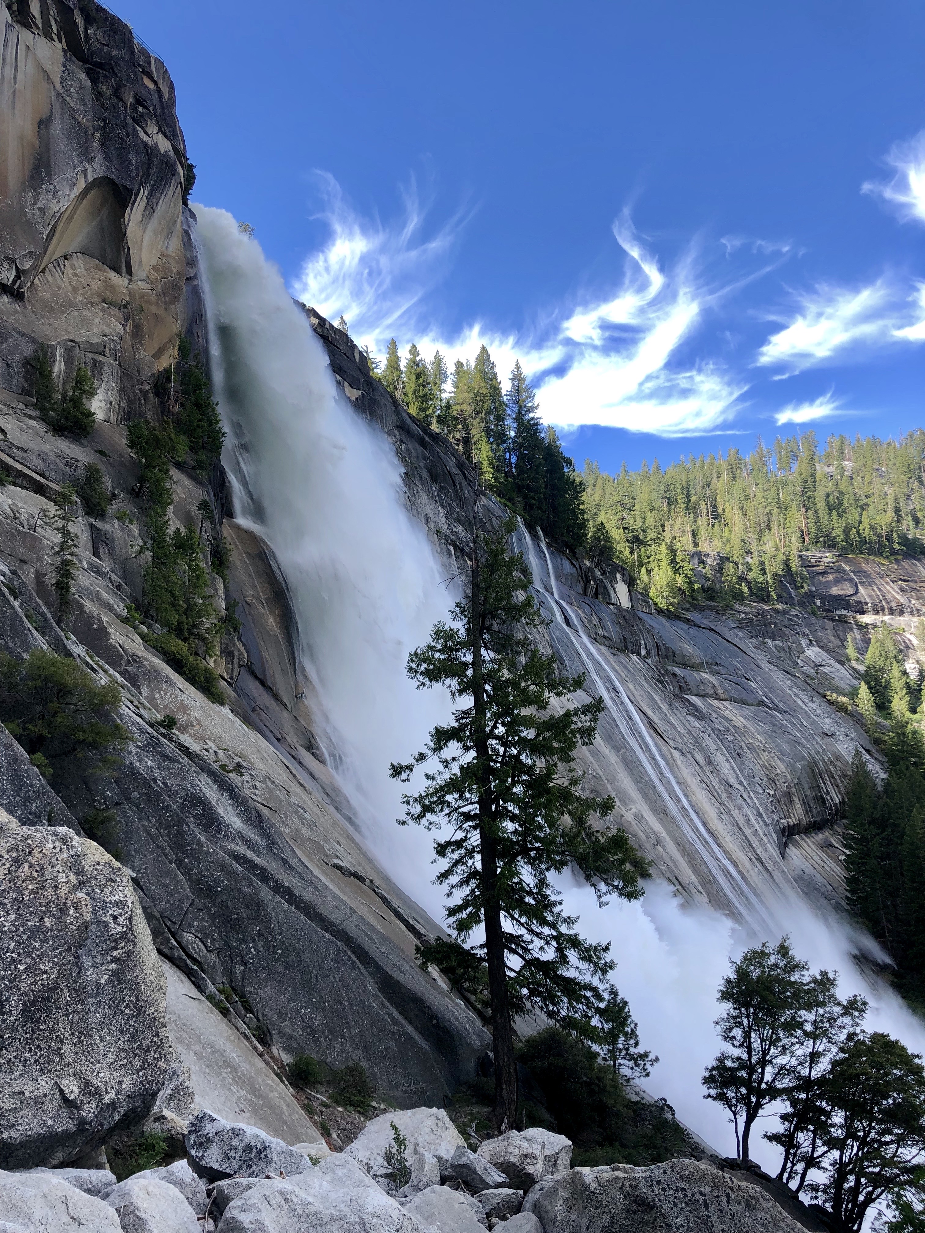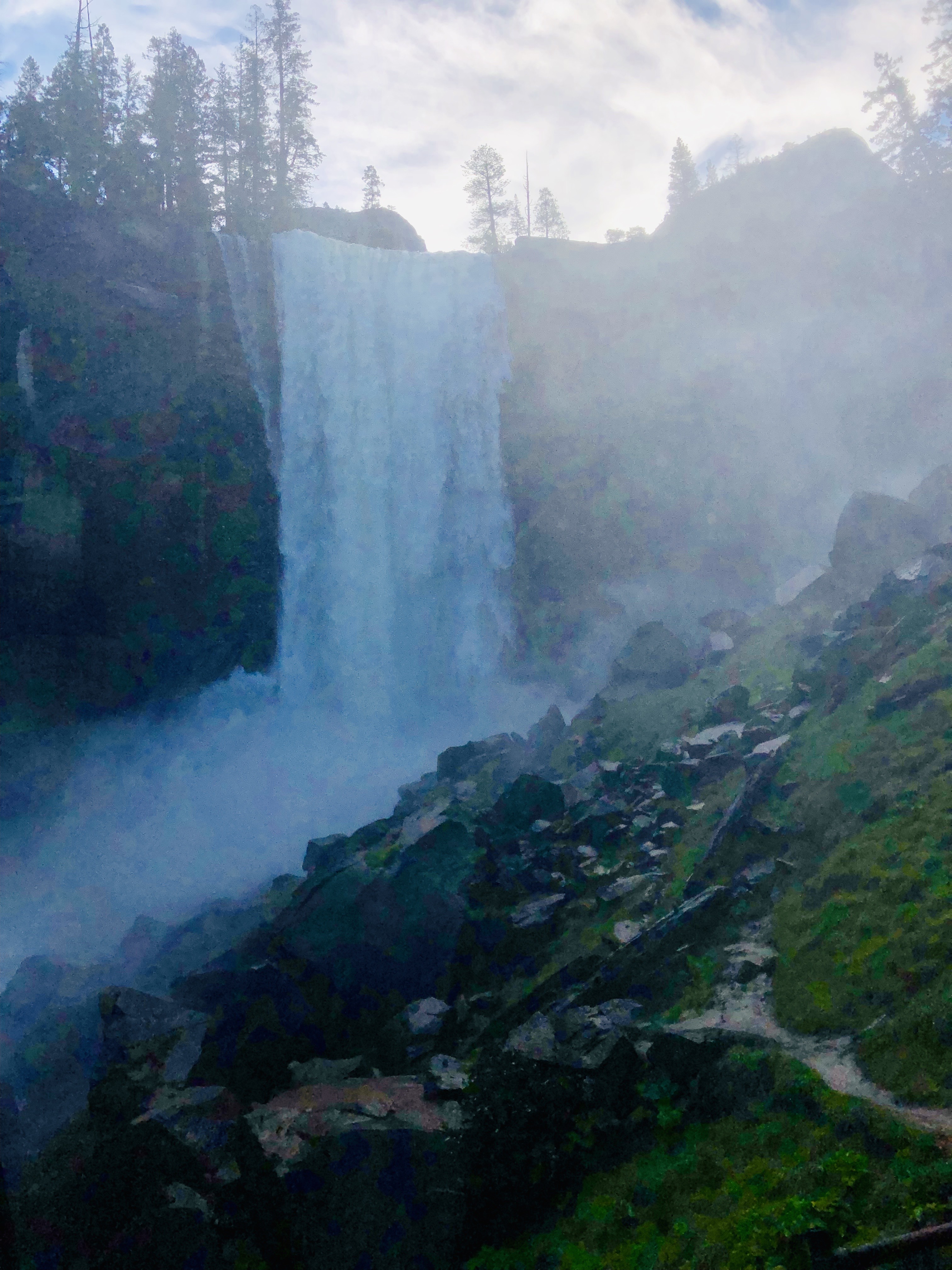 We entered the park from the north side, and were greeted with beautiful views of El Capitan once in the Valley. By luck, we found a parking spot on the side of the road near Bridalveil Falls, so we hiked towards the waterfall. The waterfall was SO FULL due to how much snow we had gotten this winter; it was unreal. The water was so powerful that we got soaked without even going all the way up to the falls.