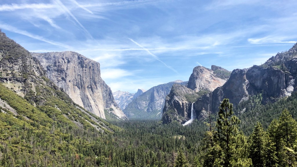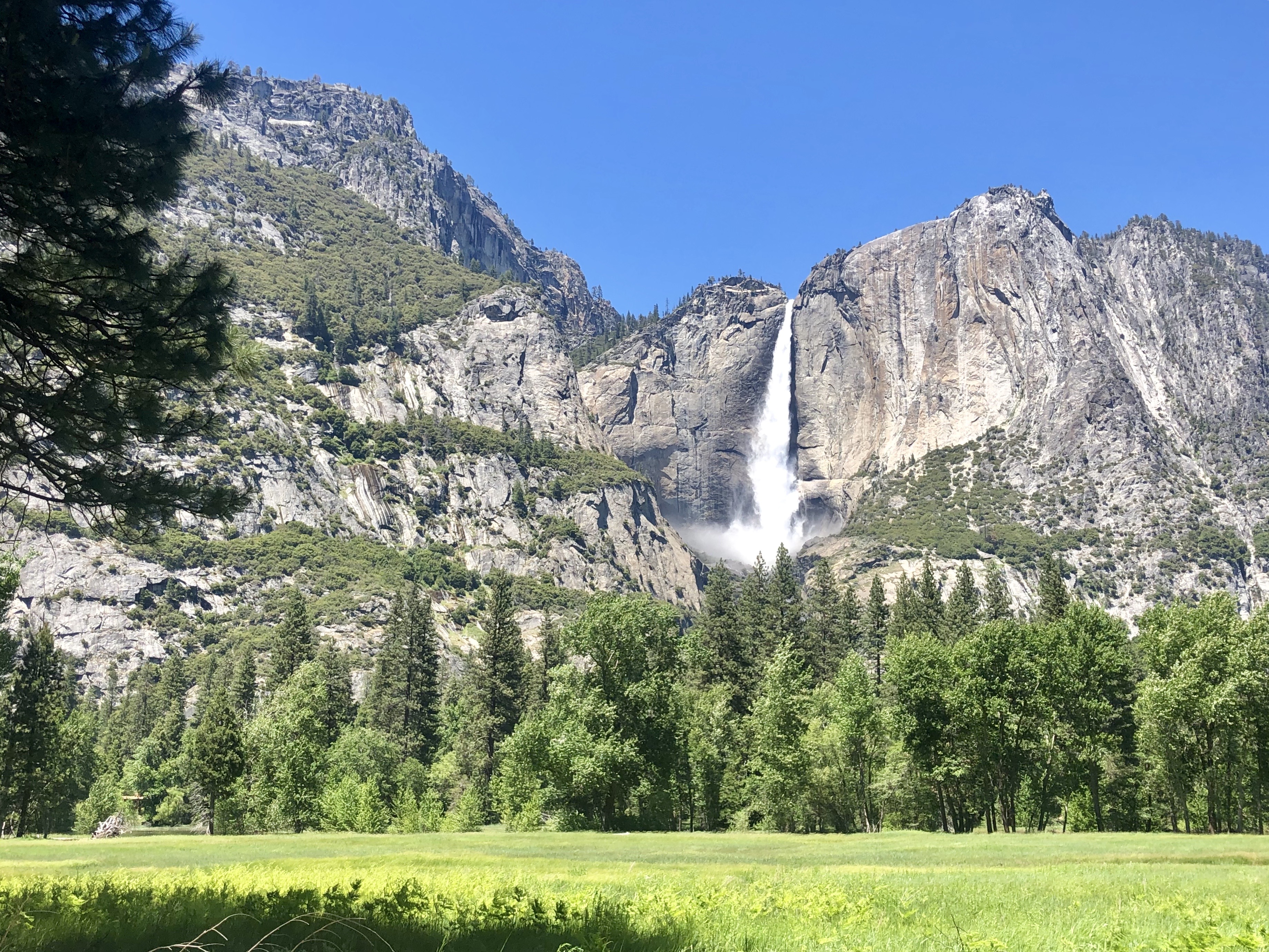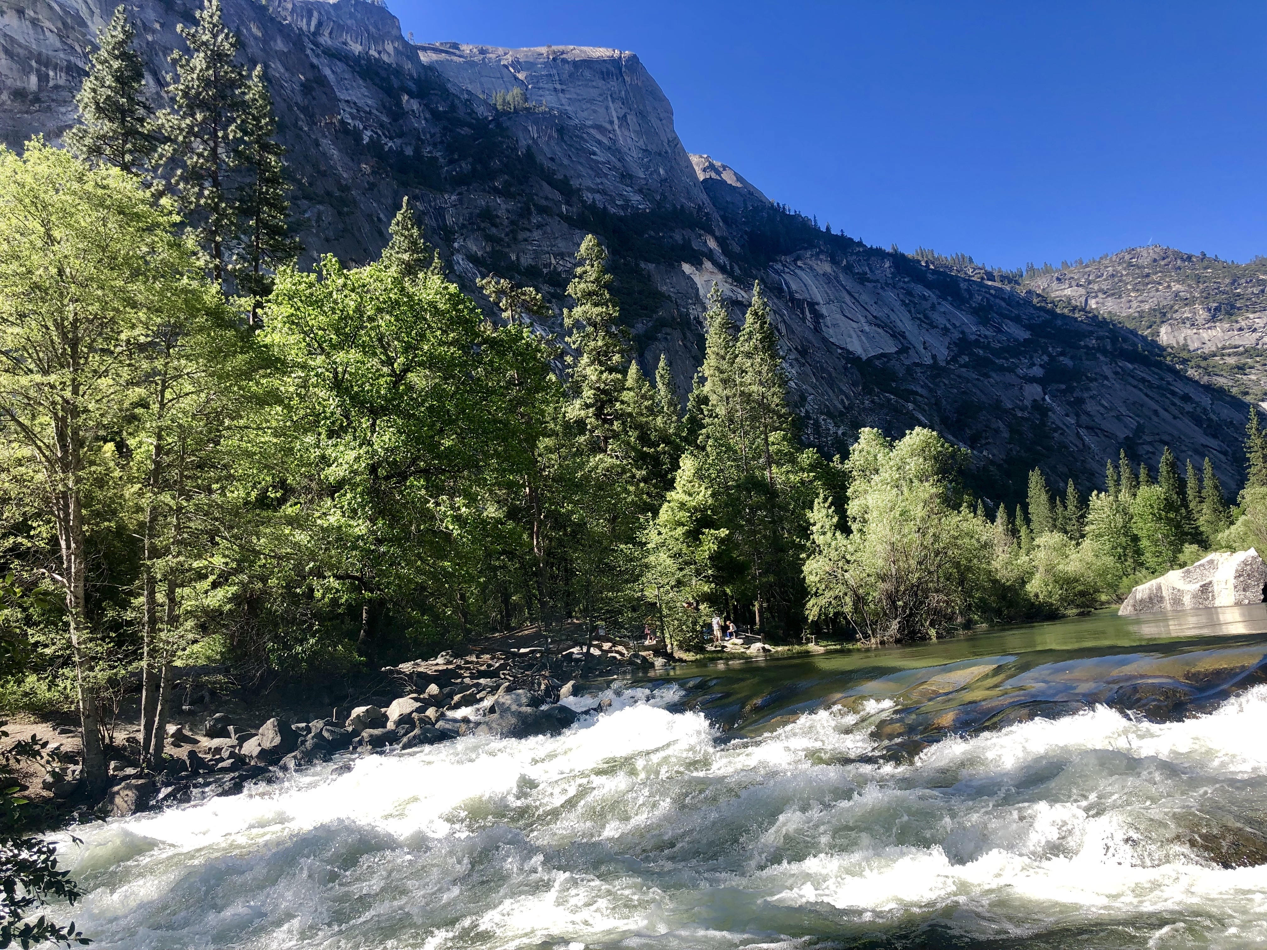 We entered the park from the north side, and were greeted with beautiful views of El Capitan once in the Valley. By luck, we found a parking spot on the side of the road near Bridalveil Falls, so we hiked towards the waterfall. The waterfall was SO FULL due to how much snow we had gotten this winter; it was unreal. The water was so powerful that we got soaked without even going all the way up to the falls.
