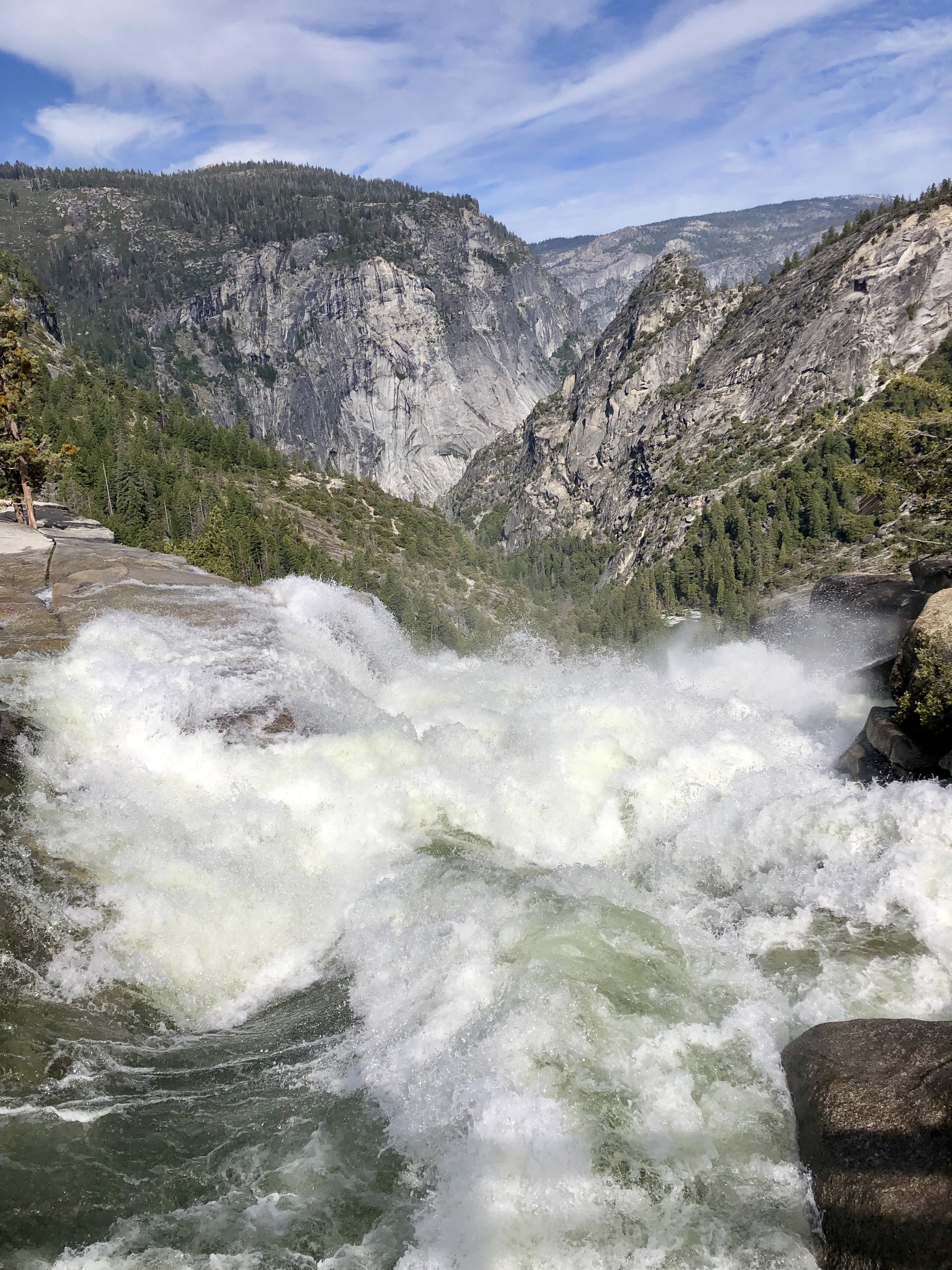 We trekked back to our campsite, started a fire, cooked dinner, and headed to bed somewhat early because we had a big hike the next morning. We woke up early to beat the heat (and crowds) on our hike to Vernal and Nevada Falls. This is a challenging, but rewarding hike! Again, the waterfalls were SO outrageously full that we got undeniably soaked walking up to Vernal Falls. Some people were smart and brought ponchos or had other clothes to change into after passing the falls, but we weren’t as prepared in that fashion. I have never seen a more powerful waterfall. The hike up to Vernal Falls was definitely steep, with countless stairs, but the hike from Vernal to Nevada Falls was more forgiving. We ran into lots of people that were hiking to Half Dome (bucket list), which is another 4 ish miles past Nevada Falls. One group even offered us one of their permits, but we were not prepared on the food/water front to hike the additional mileage that day. Next time, though!!