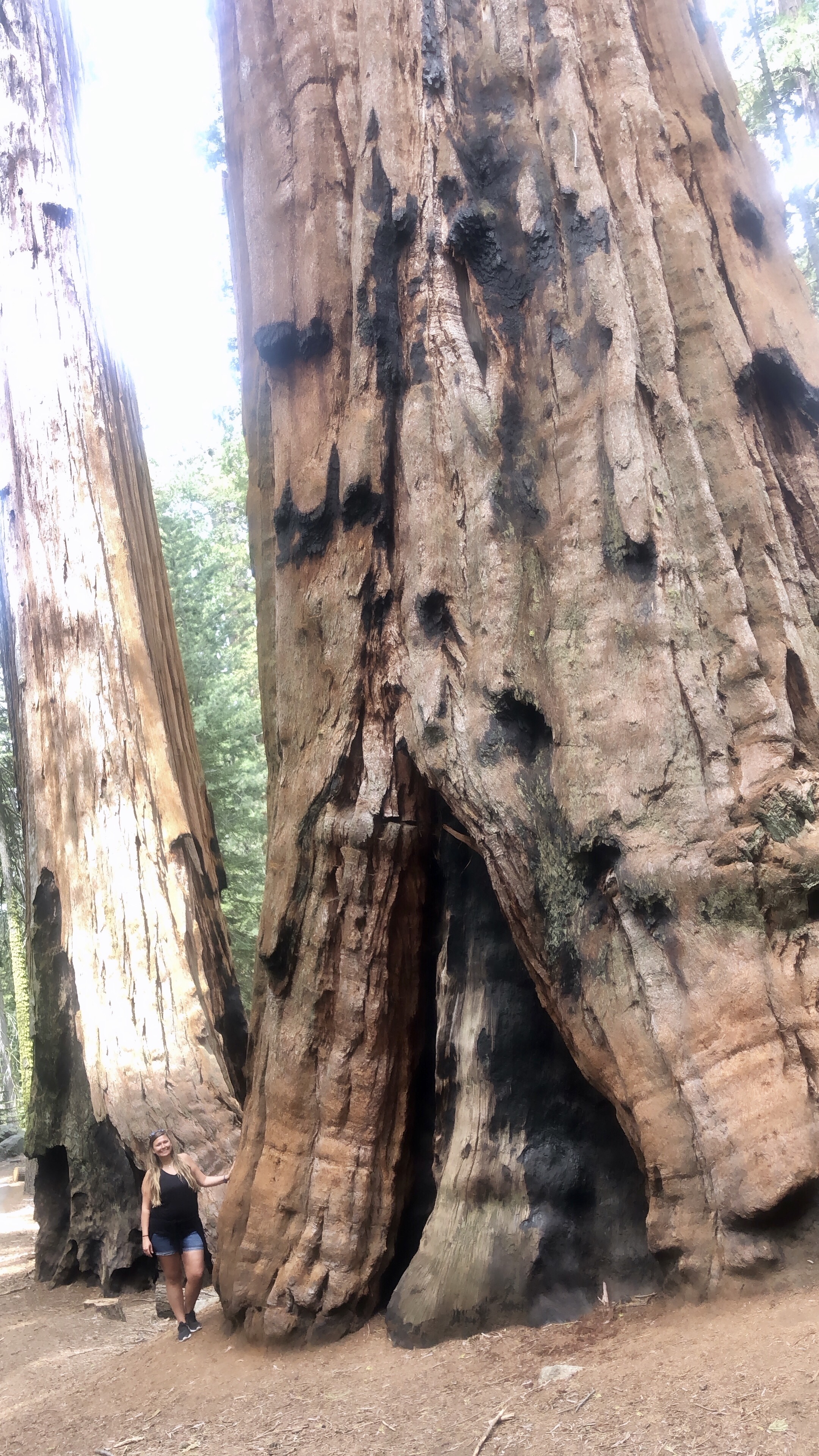 After ending our magical time at Yosemite, we ventured towards Visalia, CA, which was conveniently located about 45 minutes from the entrance of Sequoia National Park. I won’t spend too much time reminiscing about our time in Visalia, but if you’d ask me or my friend, this was probably the worst part of our trip. When we were researching where to stay, this KOA seemed like the perfect place—we would save money by camping, but would have access to showers since it was a KOA, and it was conveniently located near Sequoia National Park. What we did not know was this KOA was located in the middle of a city (and not exactly in the best part, either), our tent location was less than ideal (right under a very bright street light), our air mattress got a hole in it and wouldn’t stay inflated for anything, our firewood would not ignite, which meant we couldn’t start a fire to cook our dinner, there were flies EVERYWHERE, it felt like a sauna outside (98+ degrees), and we were just straight up grumpy. Luckily, my friend and I are pretty good at moving past the bumps in the road you inevitably come across while traveling, and were able to wake up with a much better attitude than what we went to sleep with. We knew in a few days we would be sleeping in a nice bed at an Airbnb, so I think that kept us going, too!