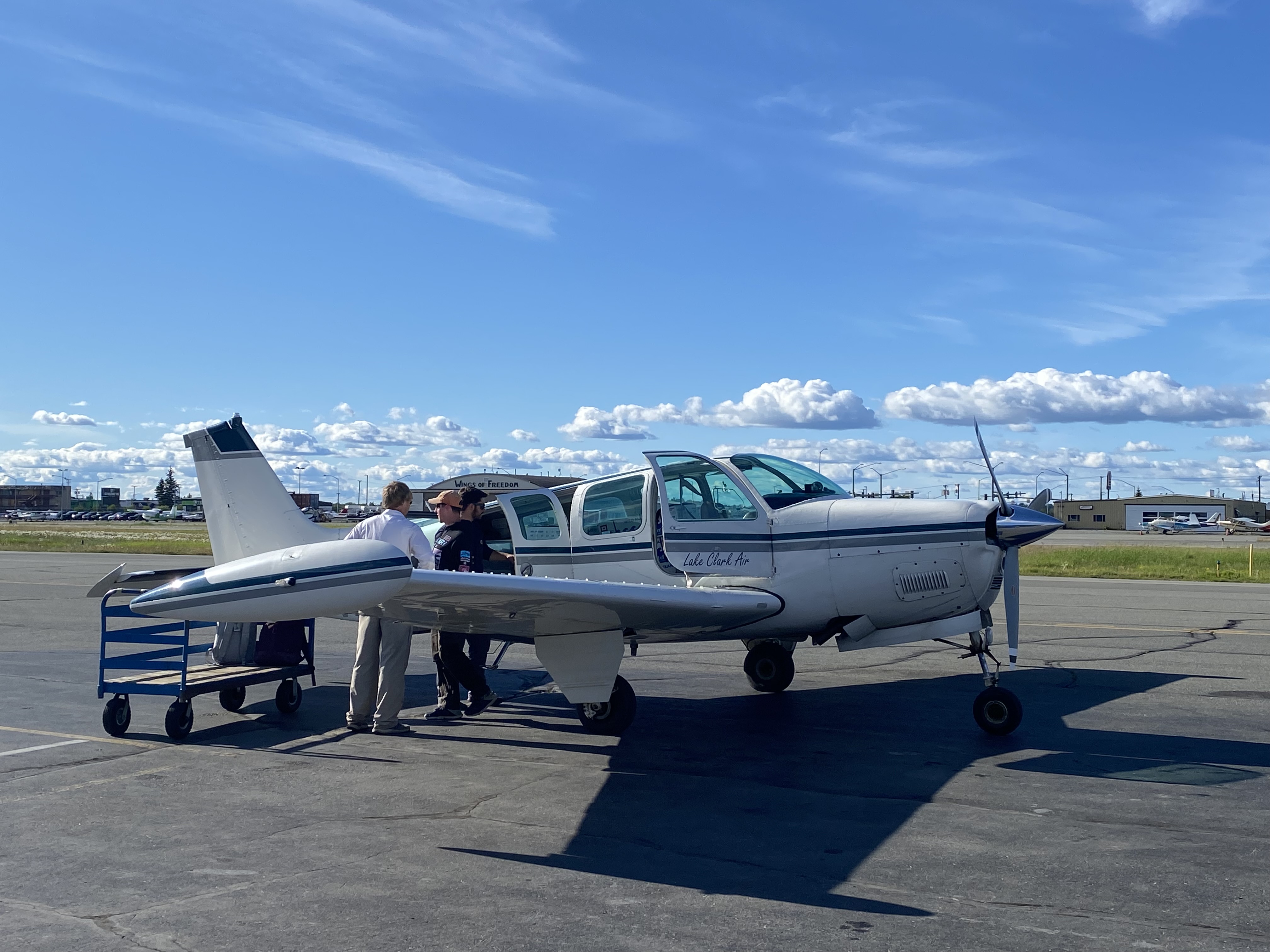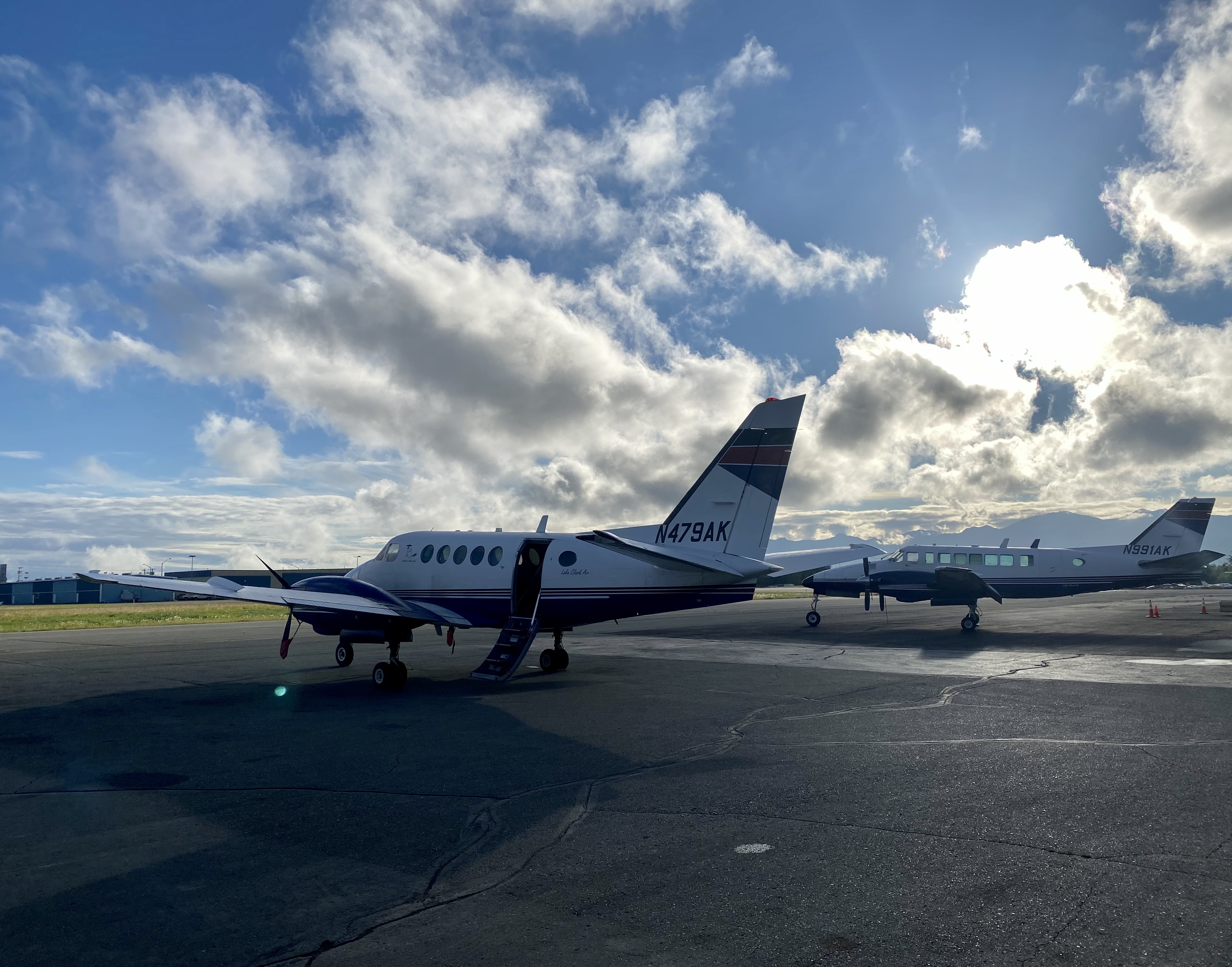 Our plane back to Anchorage was MUCH smaller than our plane into Port Alsworth. We flew back on a Beachcraft Bonanza, and it included our pilot, my friend, myself, and many boxes of salmon being transported to Anchorage- so WILD!! We were both pretty nervous to fly back in this small of a plane, but it was literally amazing. Plus, the clouds had cleared and blue skies were ahead- I had to keep pinching myself because this flight felt like an actual dream. It was without a doubt, my favorite National Park experience to date.