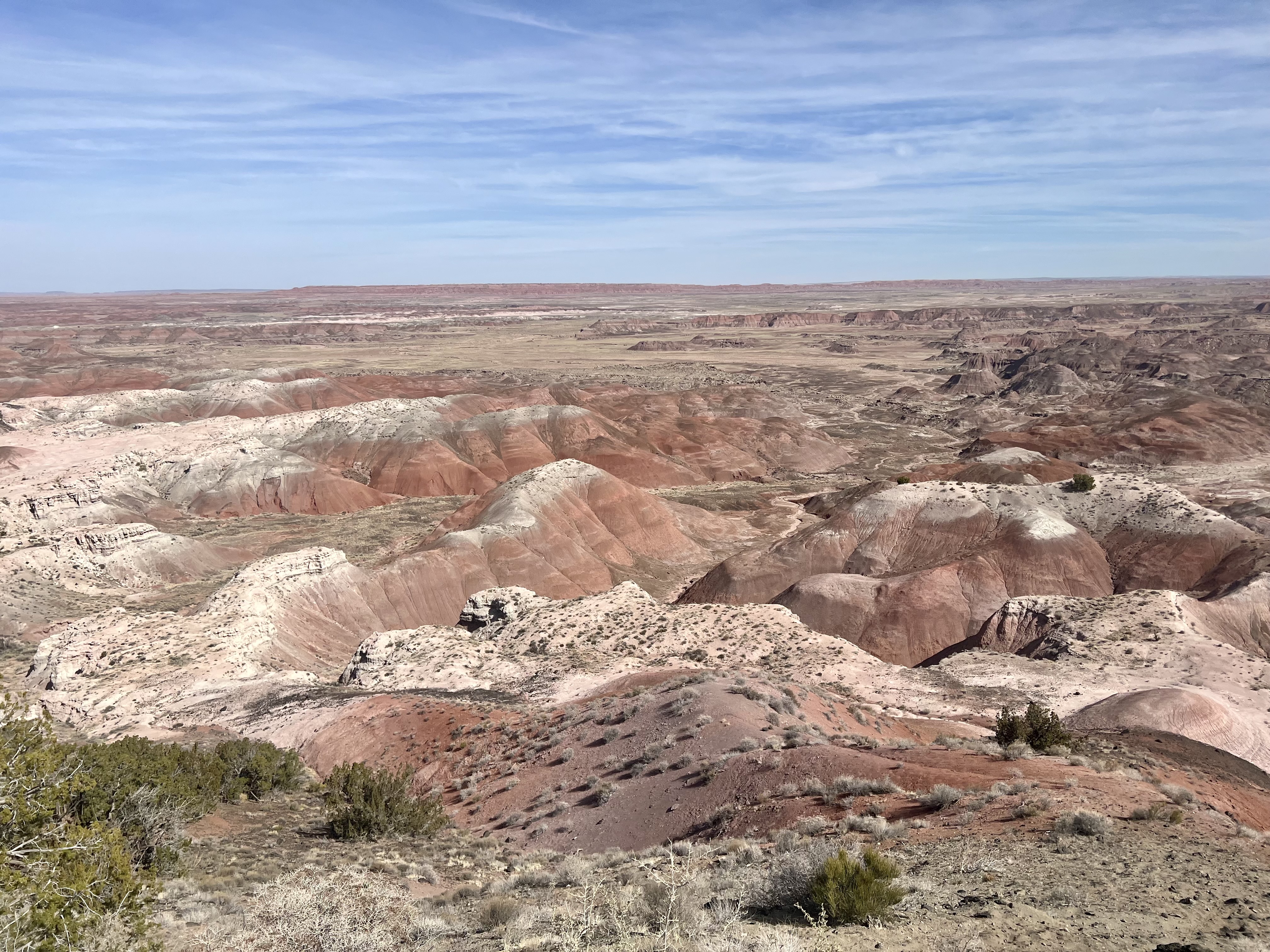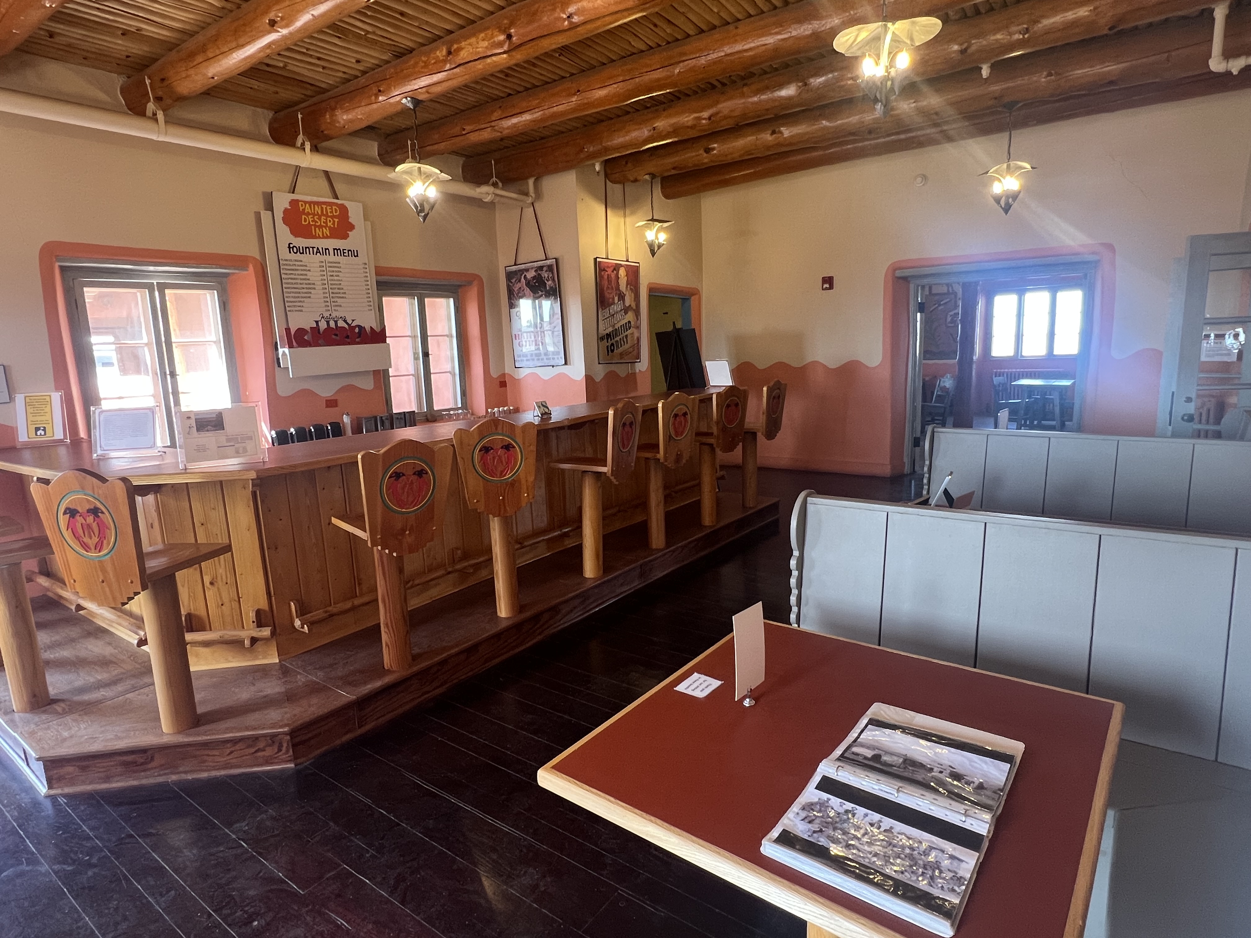 We entered through the park’s North Side: The Painted Desert. Here we stopped at the visitor’s center, then drove the park road for some colorful views of the painted desert. We stopped at the Painted Desert Inn, which is a historic inn turned museum that offered fun exhibits and memorabilia.
