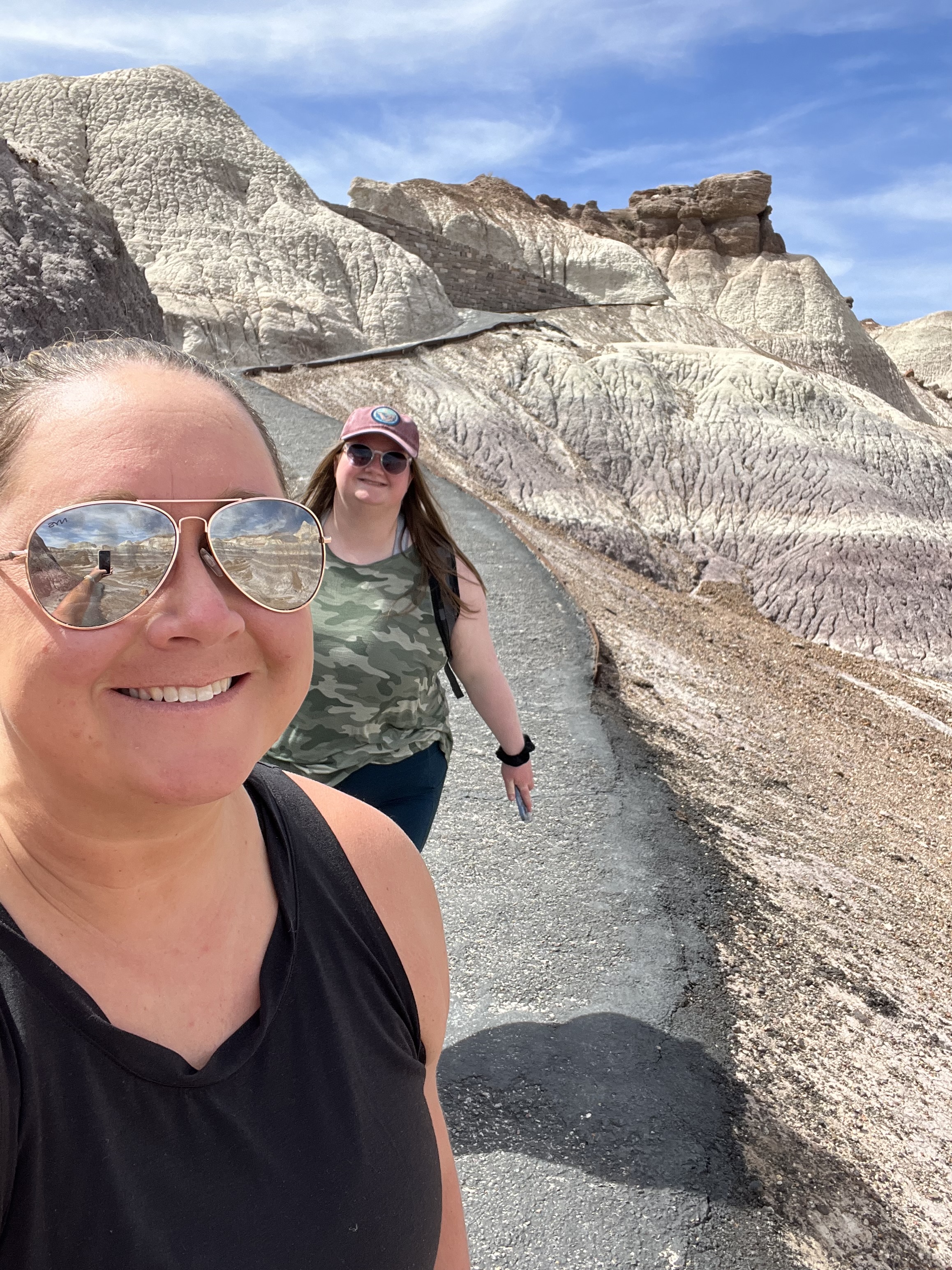 Blue Mesa was probably one of our favorite parts of the park. We walked the 1-mile RT trail down and around the blue bentonite clay cliffs. These badlands were vibrant of blue, purple, and gray colors. It was on this trail where we got our first glimpse of the petrified wood as well. After hiking back up, we also drove the 4-mile loop road for more views of the Blue Mesas.