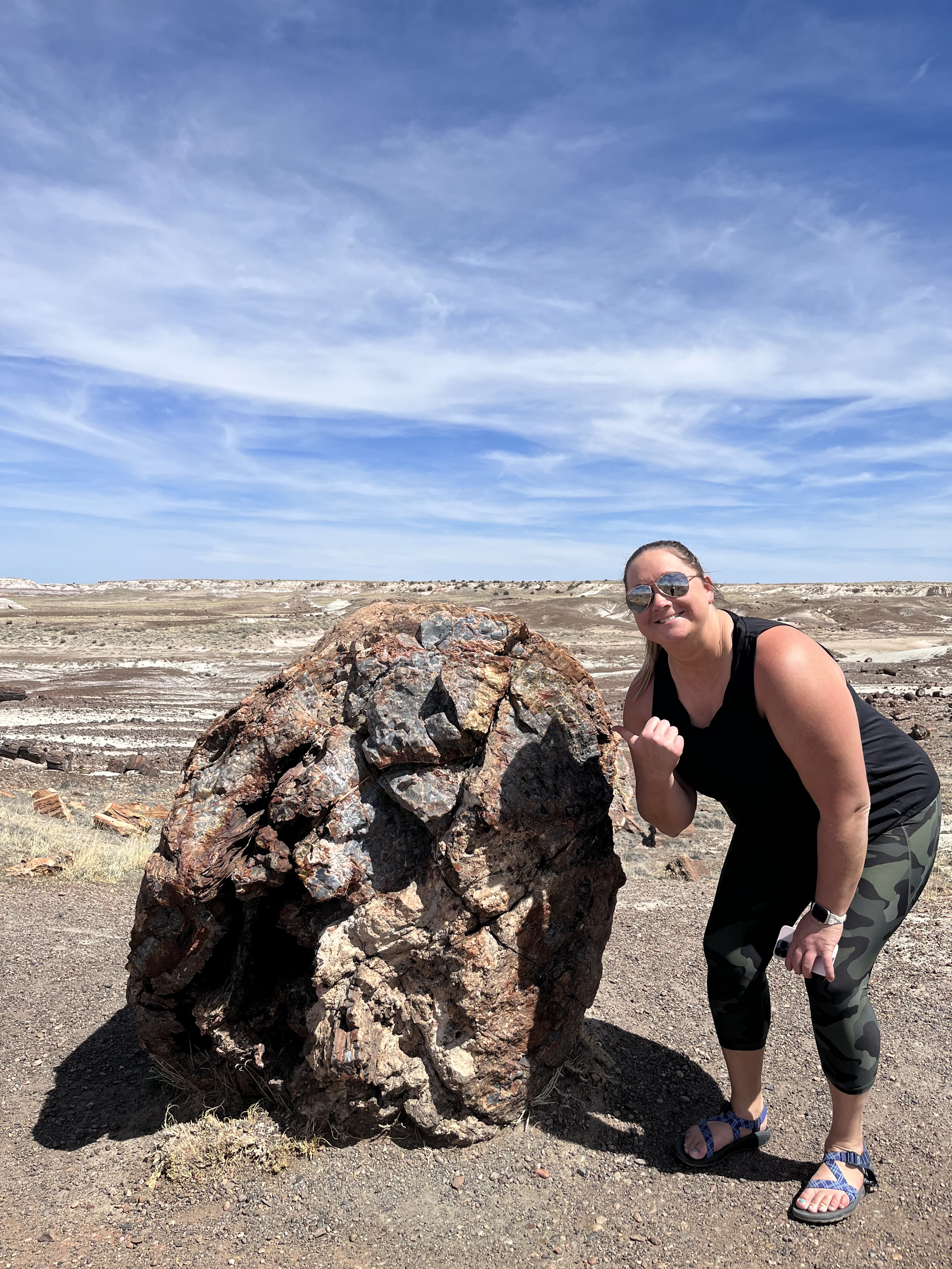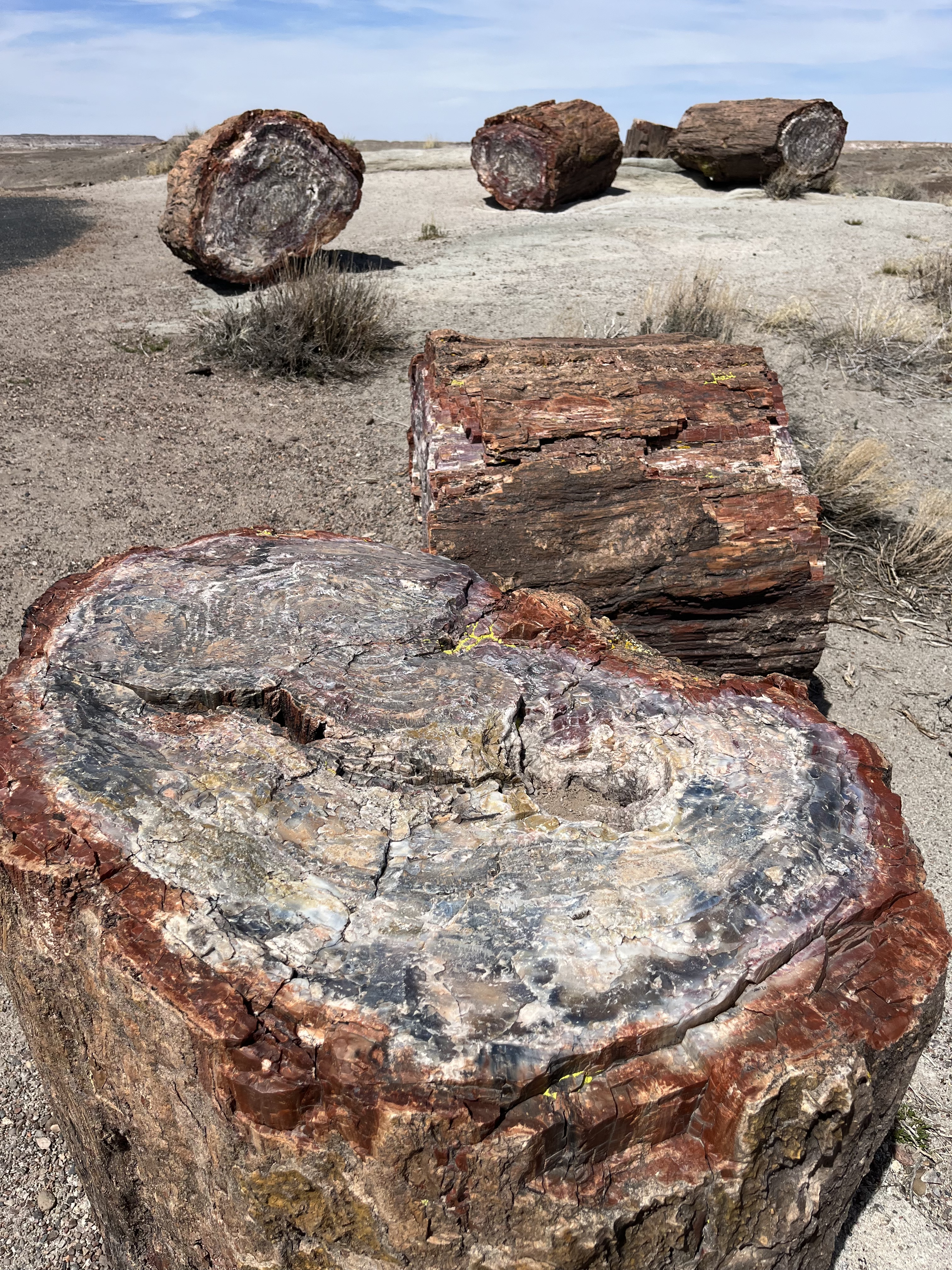 Our last stop was at the Rainbow Forest visitor’s center and museum. Right outside the museum is the Giant Logs Trail, which was an easy 0.5-mile trail viewing the park’s largest petrified trees. “Old Faithful” is the showcase log, and is almost ten feet around at the base.