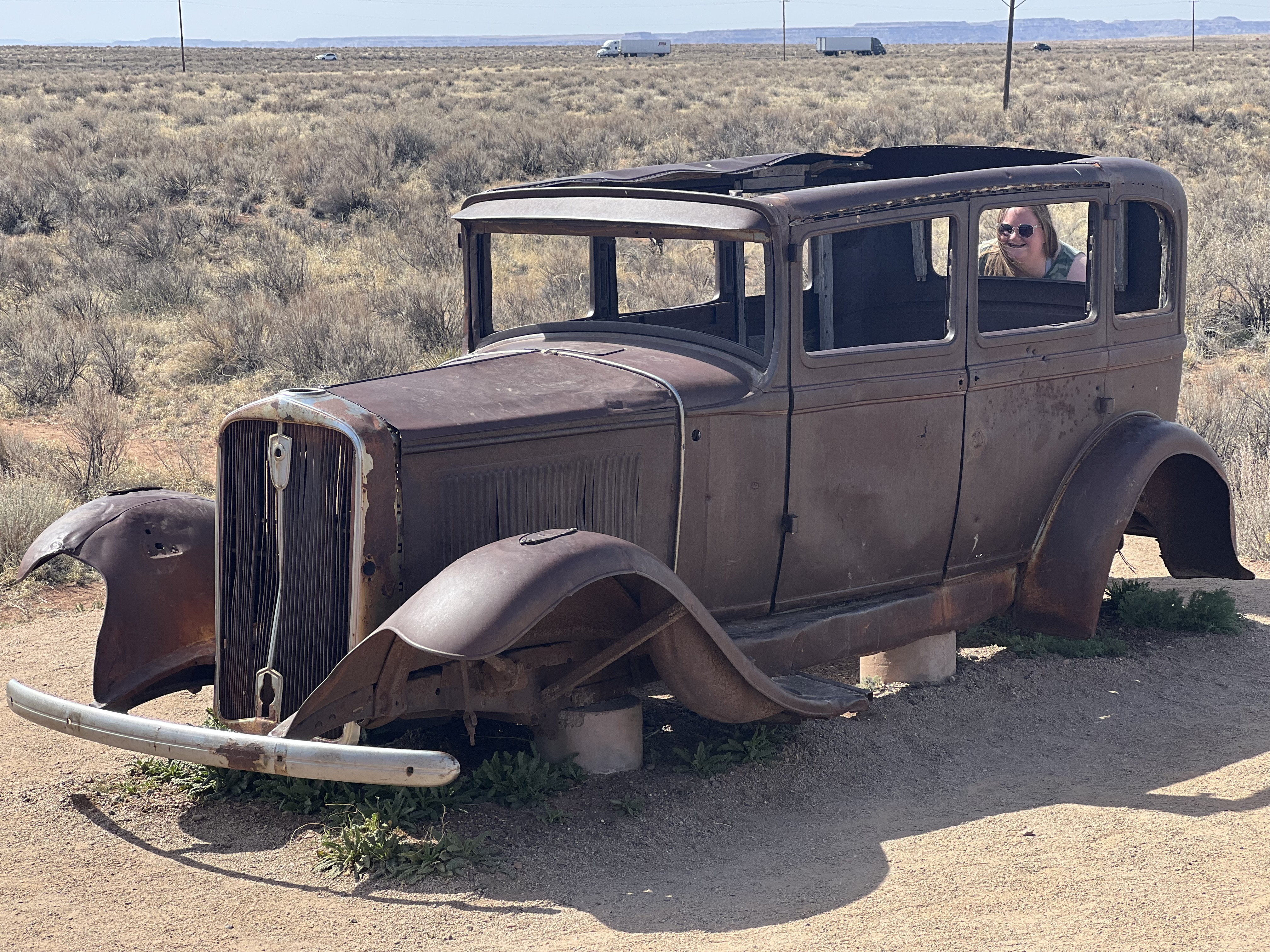 Past the inn, we continued down the road towards the rusted 1932 Studebaker, which sits alone off the side of the road. This car symbolizes where the famed Route 66 once cut through the park.