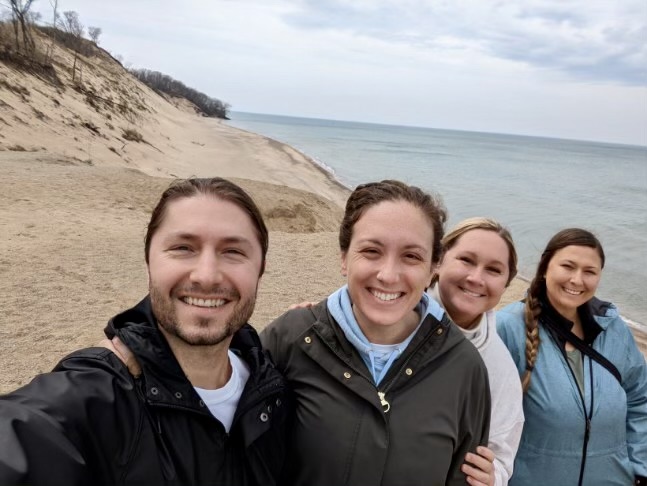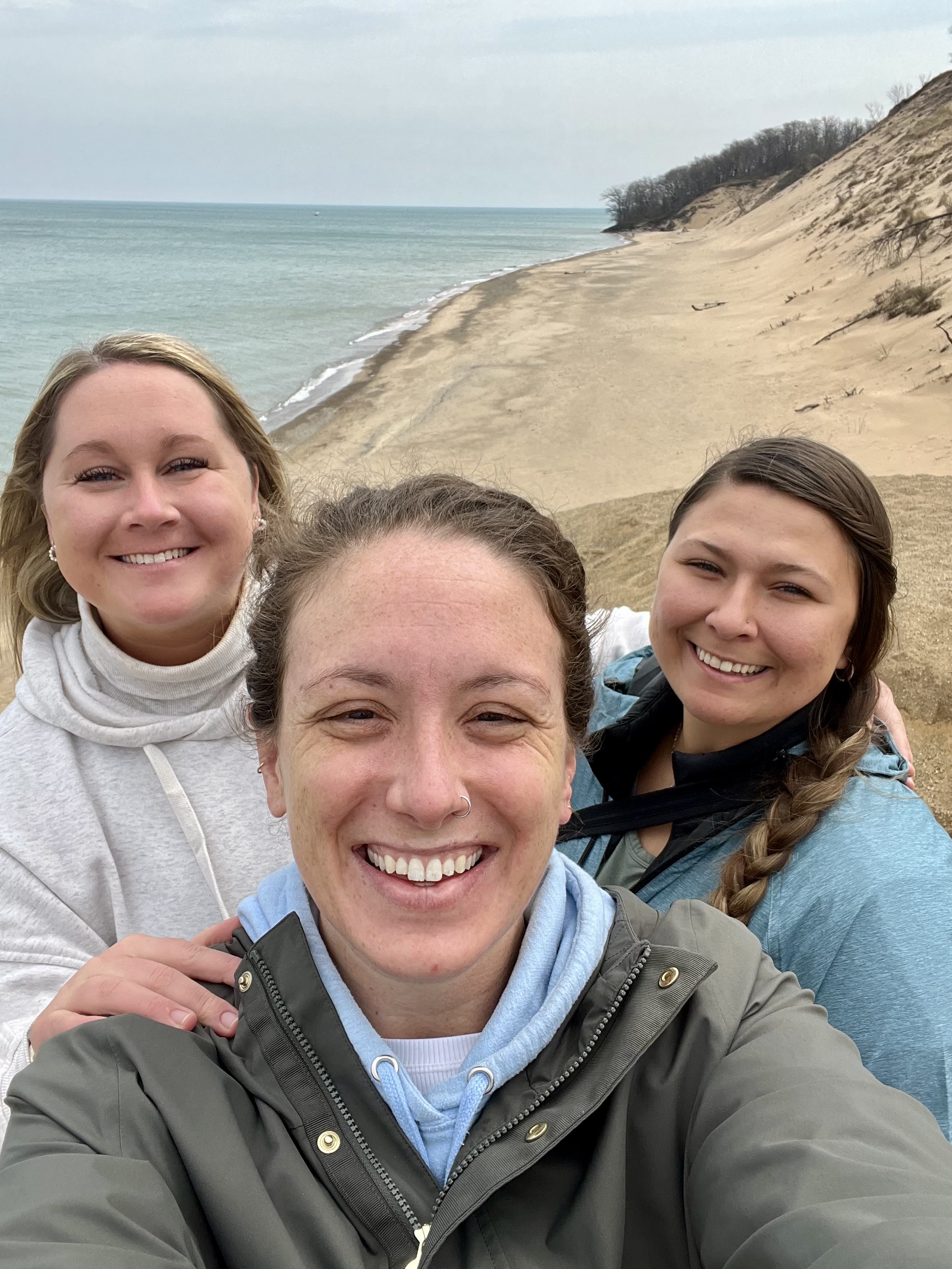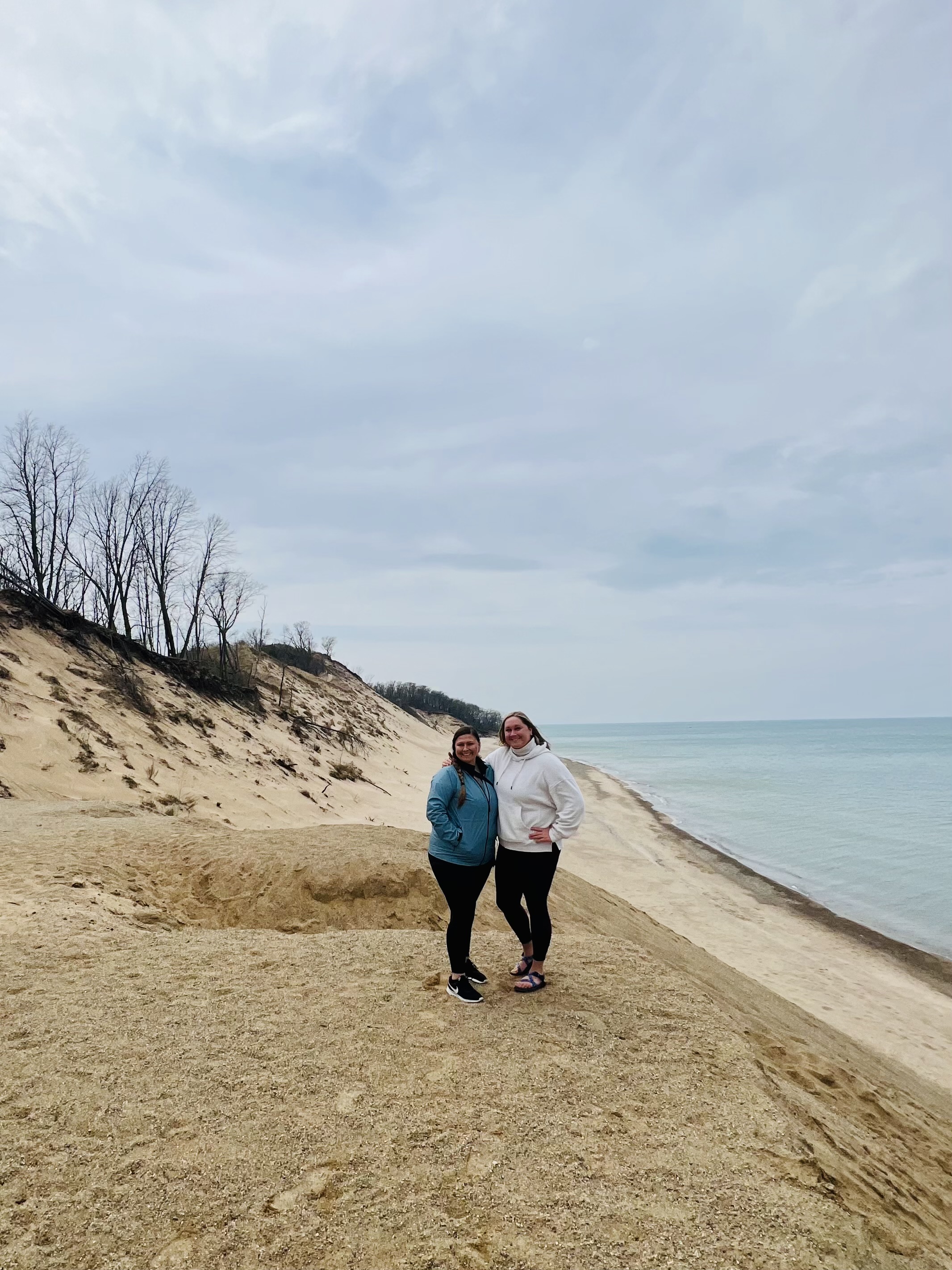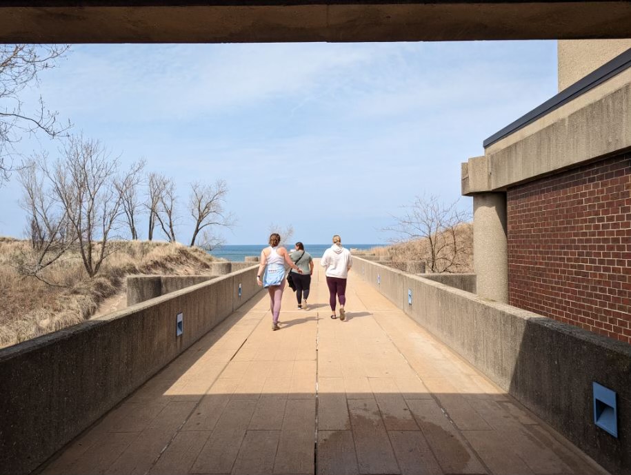 The next morning, we recovered with some liquid IV and coffee and headed for the national park.  Before we headed for the Midwest for the weekend, it was forecasted to rain the whole time.  We had missed most of it up until this point, but that morning our luck ran out.  It was pouring rain our whole way to the park, and was still raining once we got there.  We hung out in the visitor’s center for a while—walked around, watched some informational films, and then eventually chatted with a park ranger.  We learned that Indiana Dunes National Park is the fifth most biodiverse national park, just behind Yosemite.  There are also two types of dunes in the park: foredunes and blowout dunes.  The foredunes are close to the beach and covered in vegetation.  Blowout dunes are caused by intense winds that rip the dunes apart.  The loose sand makes a “living dune,” which can move up to several feet per year.
