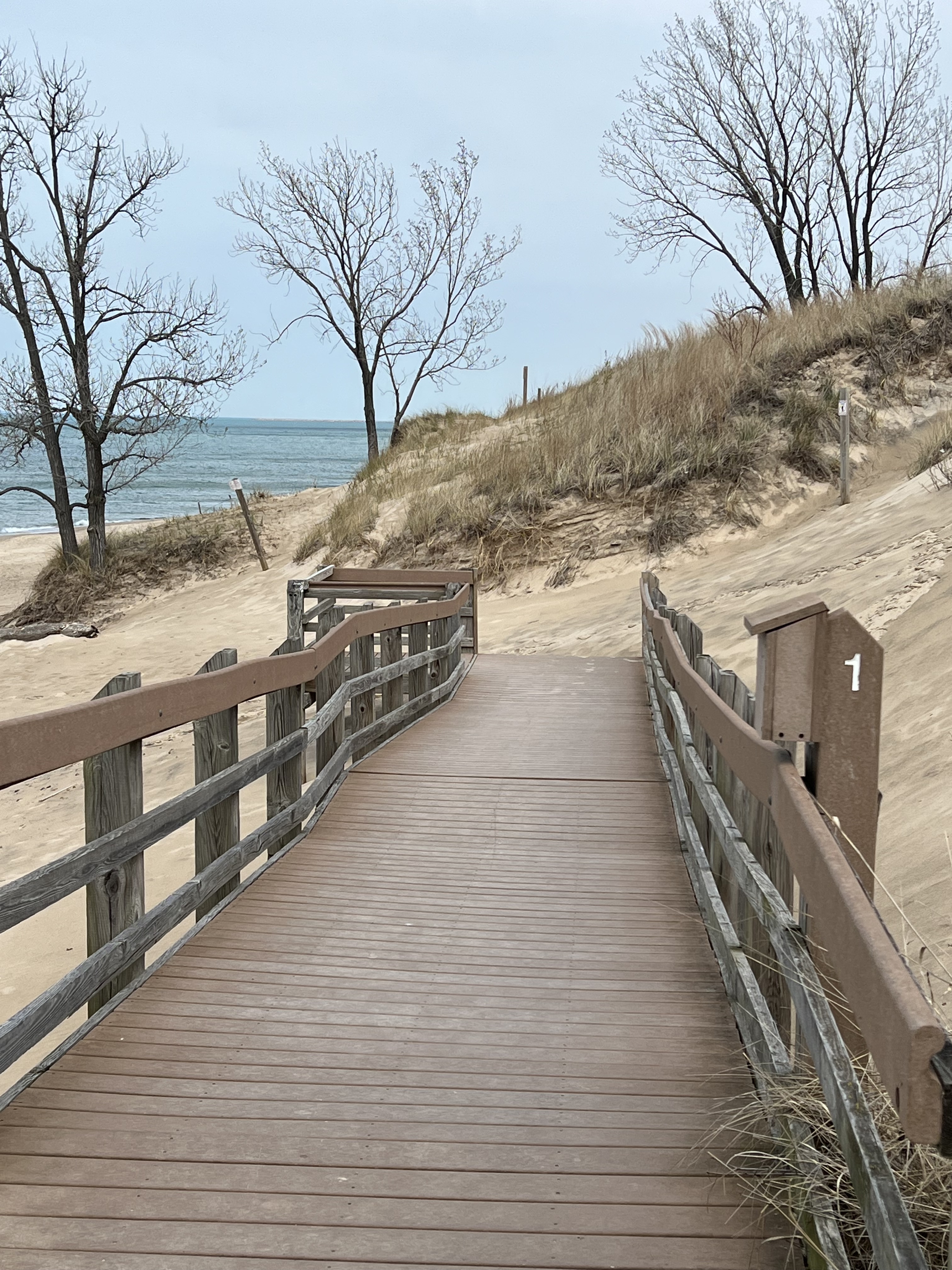 Once the rain let up, we ventured out to explore the park, starting with the scenic drive.  We did a couple short nature walks along the trails and boardwalks, and walked along the shore.  This would definitely be a fun park to come to in the summer—Lake Michigan and these beaches are absolutely beautiful.