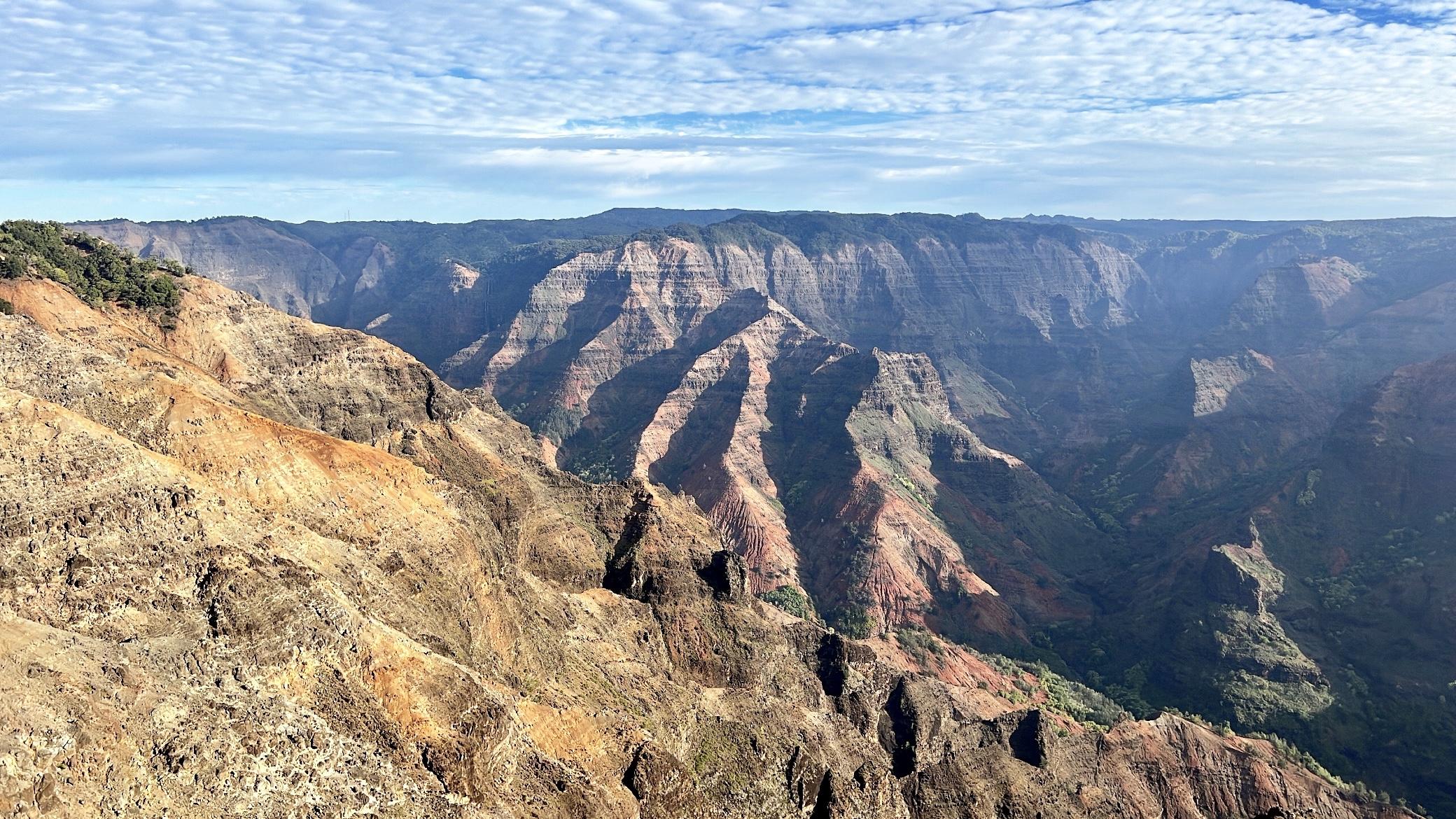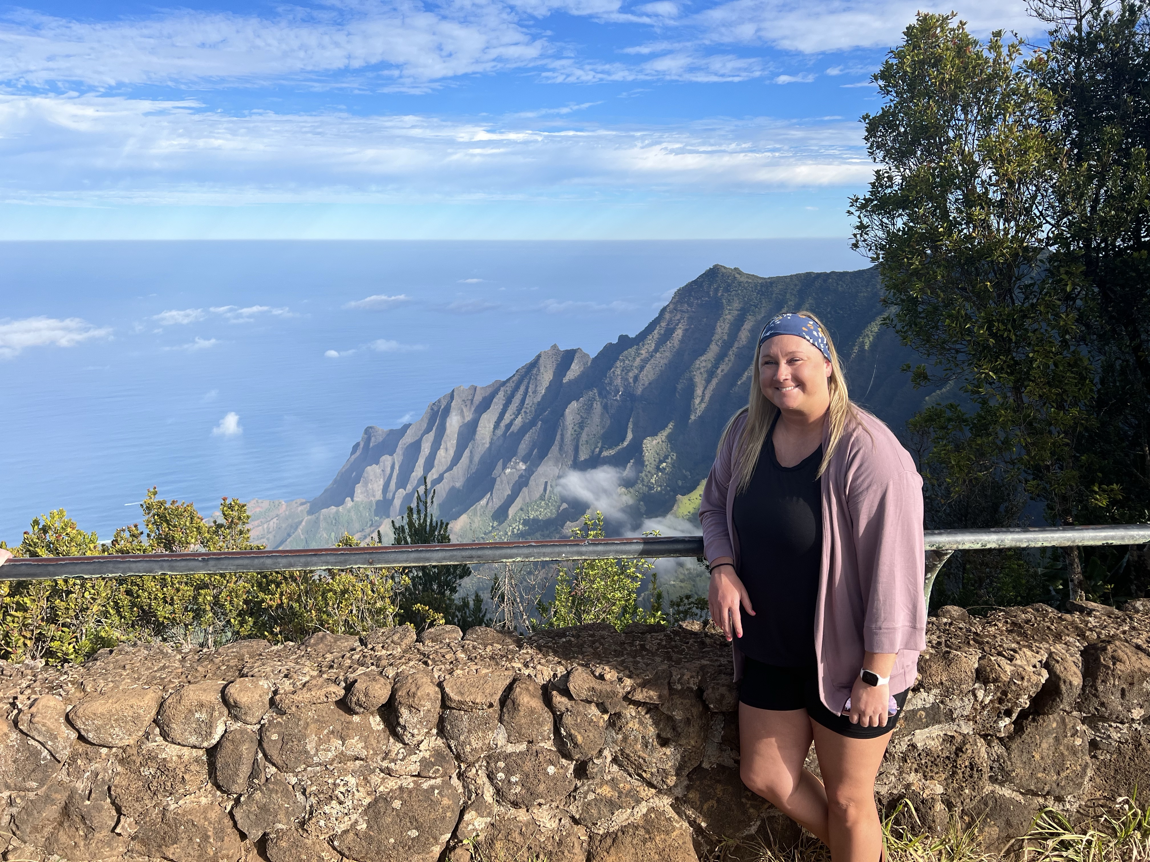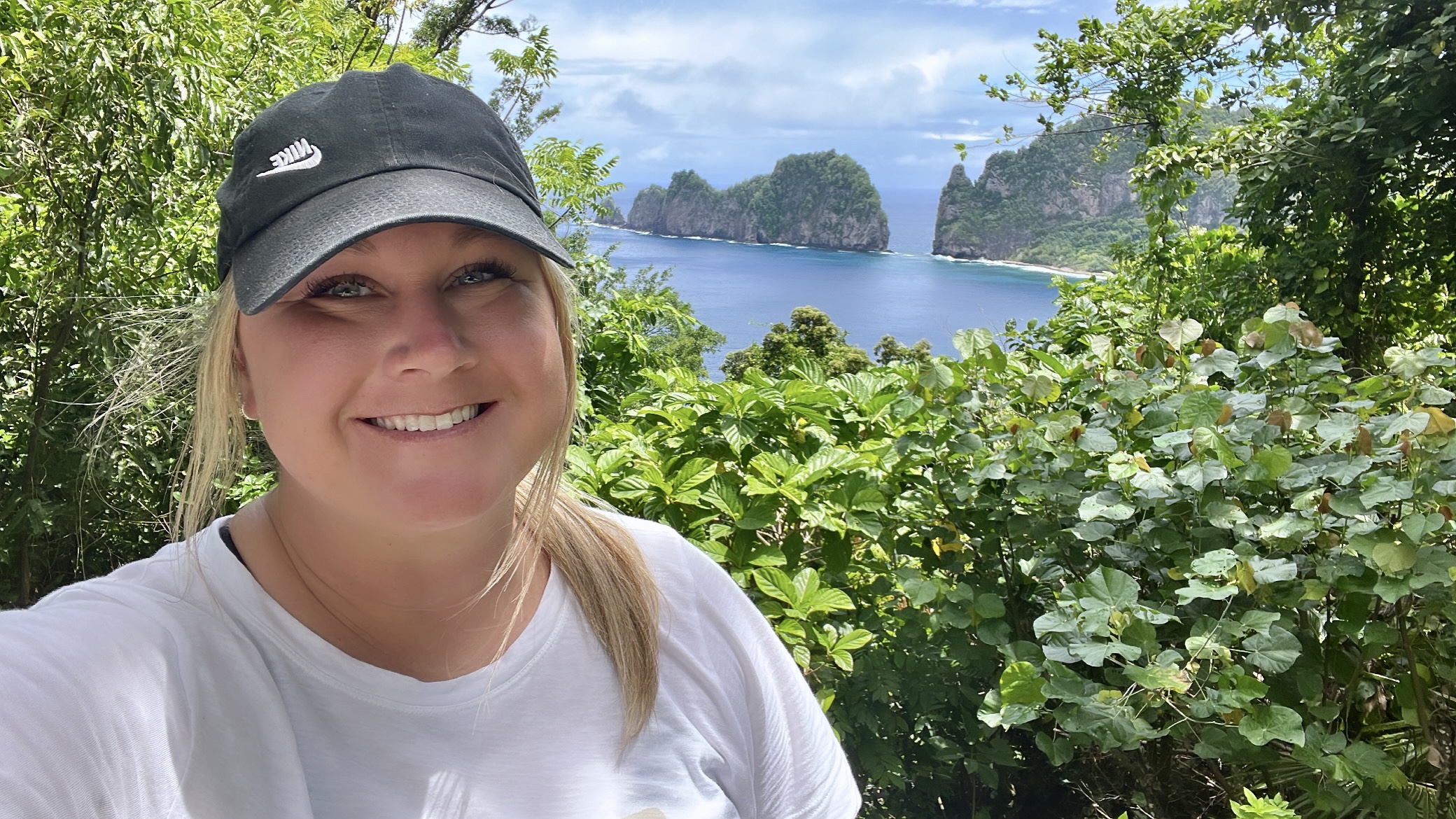 We left the visitor’s center with big smiles and happy hearts, ready to go exploring! First up was the scenic drive— honestly though, everywhere you drive on the island is scenic. We eventually made it to the top of one of the mountain passes, and ventured on our first hike. We started with the Lower Sauma Ridge Trail— rated as moderate, yet was short (less than 1 mile RT). This interpretive trail took us through a rainforest, and eventually lead to spectacular views of the northeast coastline of the island and the Vai’ava Strait National Natural Landmark.