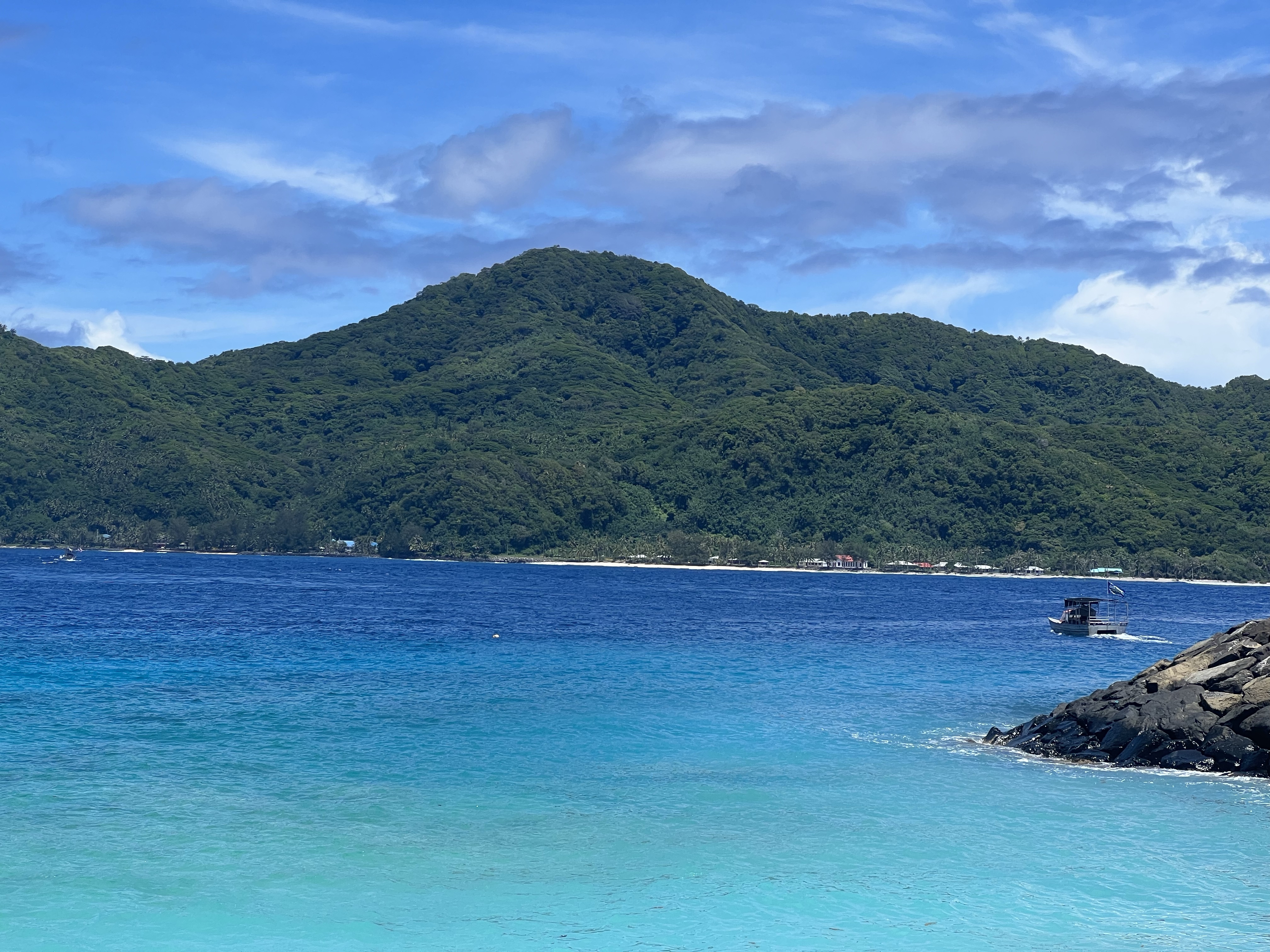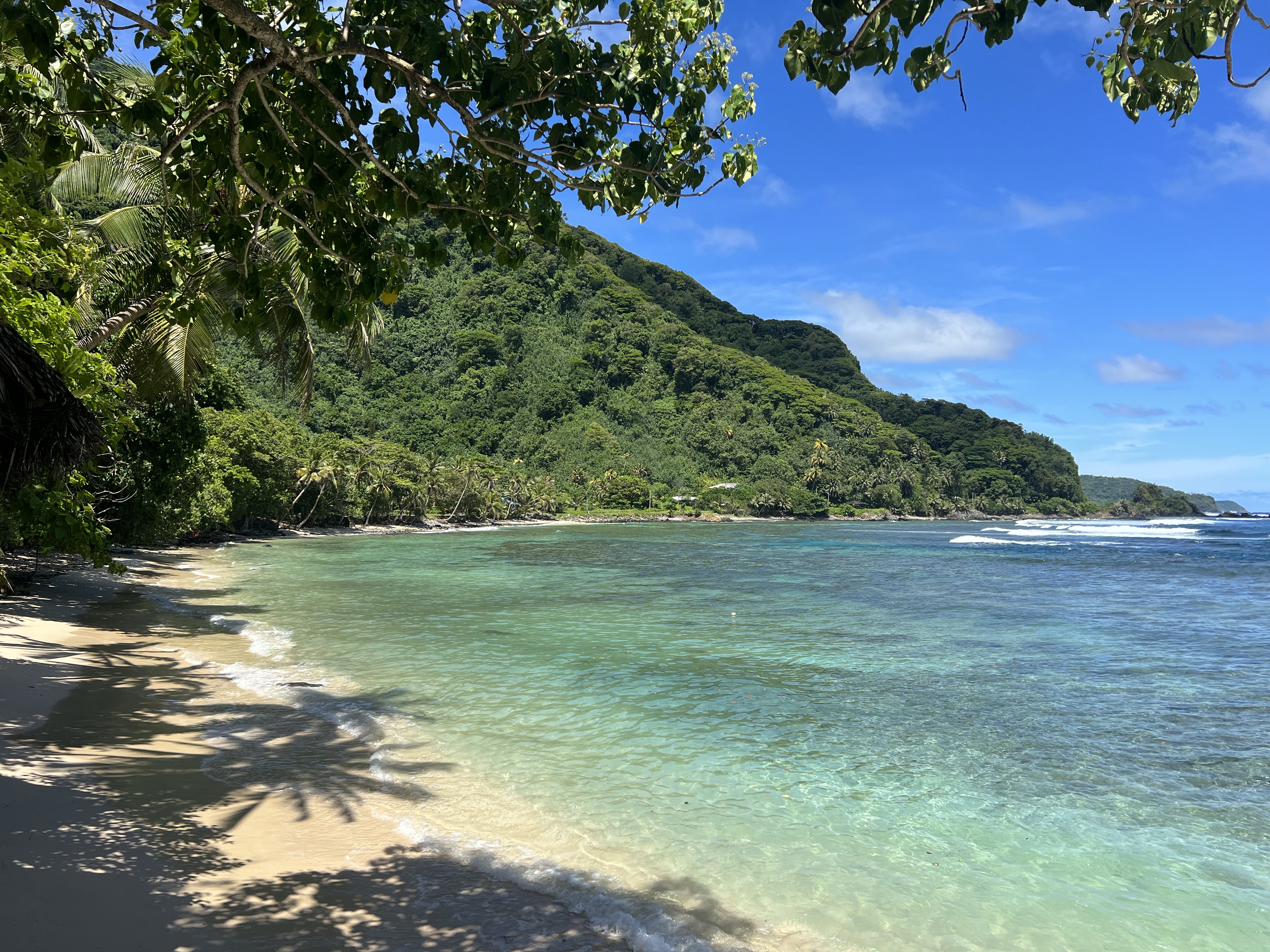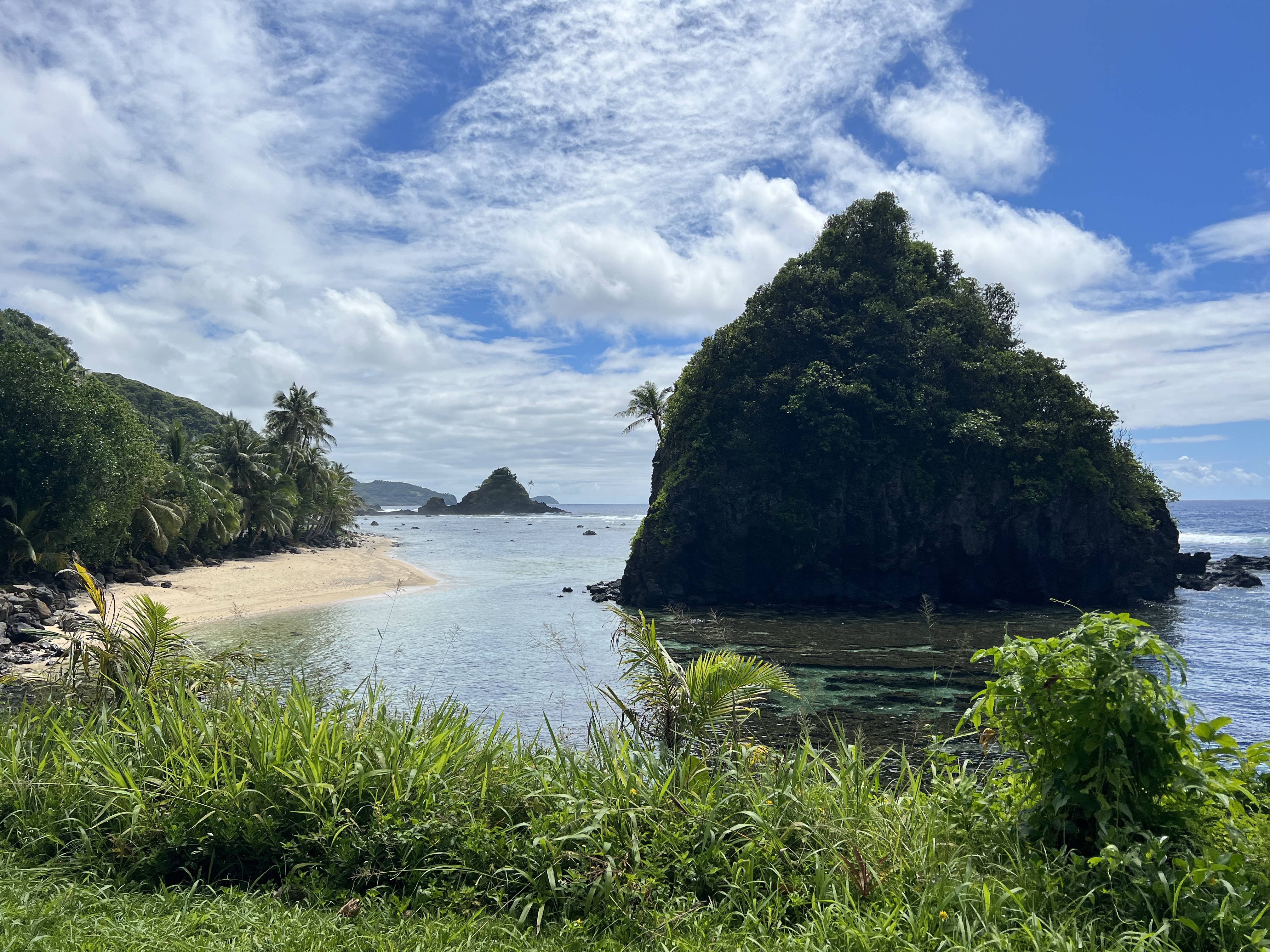 The next day, we planned to explore the island of Aunu’u. This island isn’t technically a part of the national park, but still very much worth exploring. To get to the island, you drive to the eastern tip of Tutuila and ask one of the boats waiting in the wharf to take you across. The boat ride costs $2 per person, each way, and is a relatively easy 10-15 minute ride. Once we got there, we walked down the road a bit before parking ourselves on the beach. Our plan was to spend the day snorkeling, however the tides made that quite challenging— it was difficult to even stand up in the water without getting knocked off your feet. We only lasted an hour or two before ultimately deciding to head back, but I’m still glad we made the trip!
