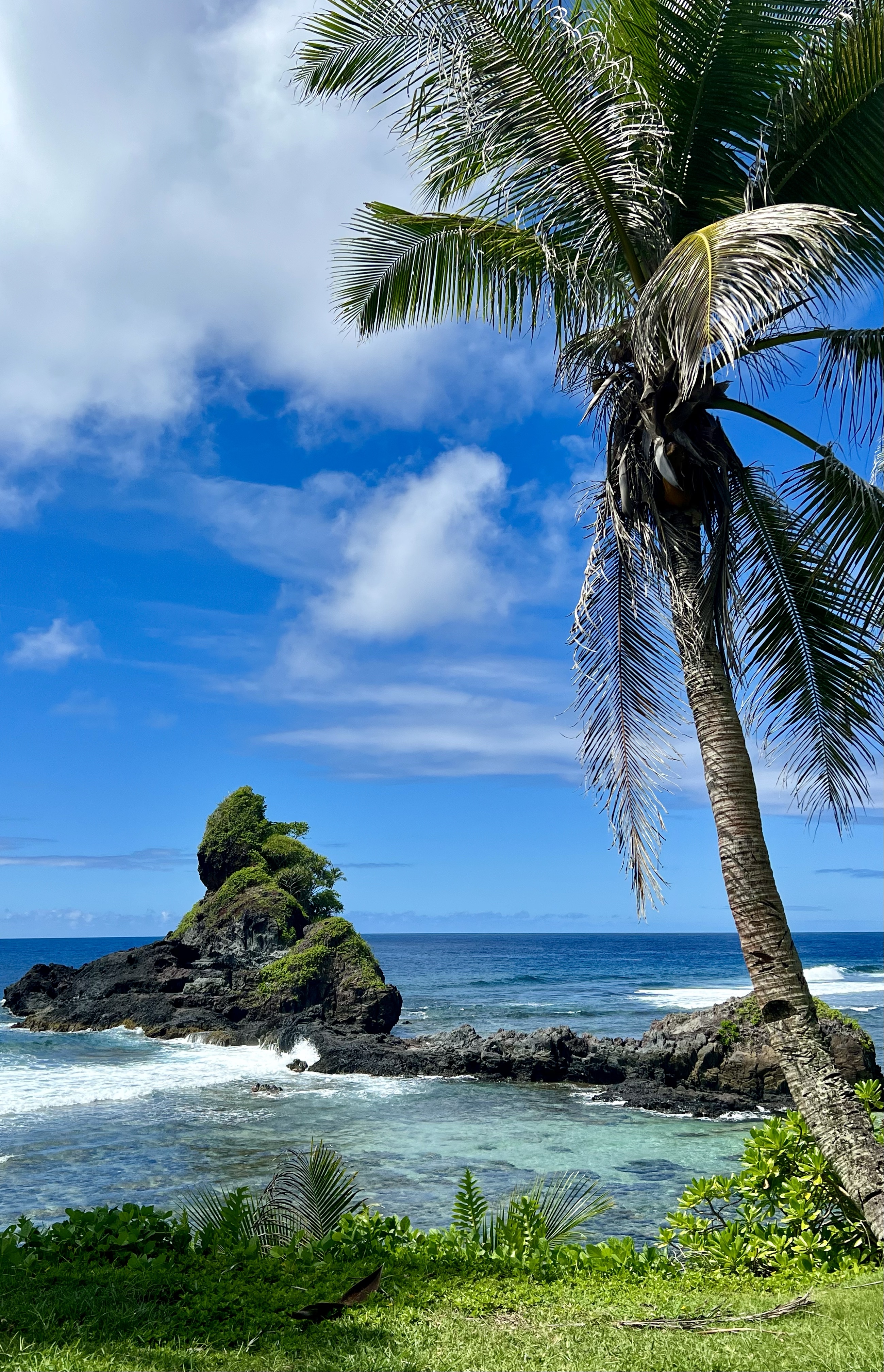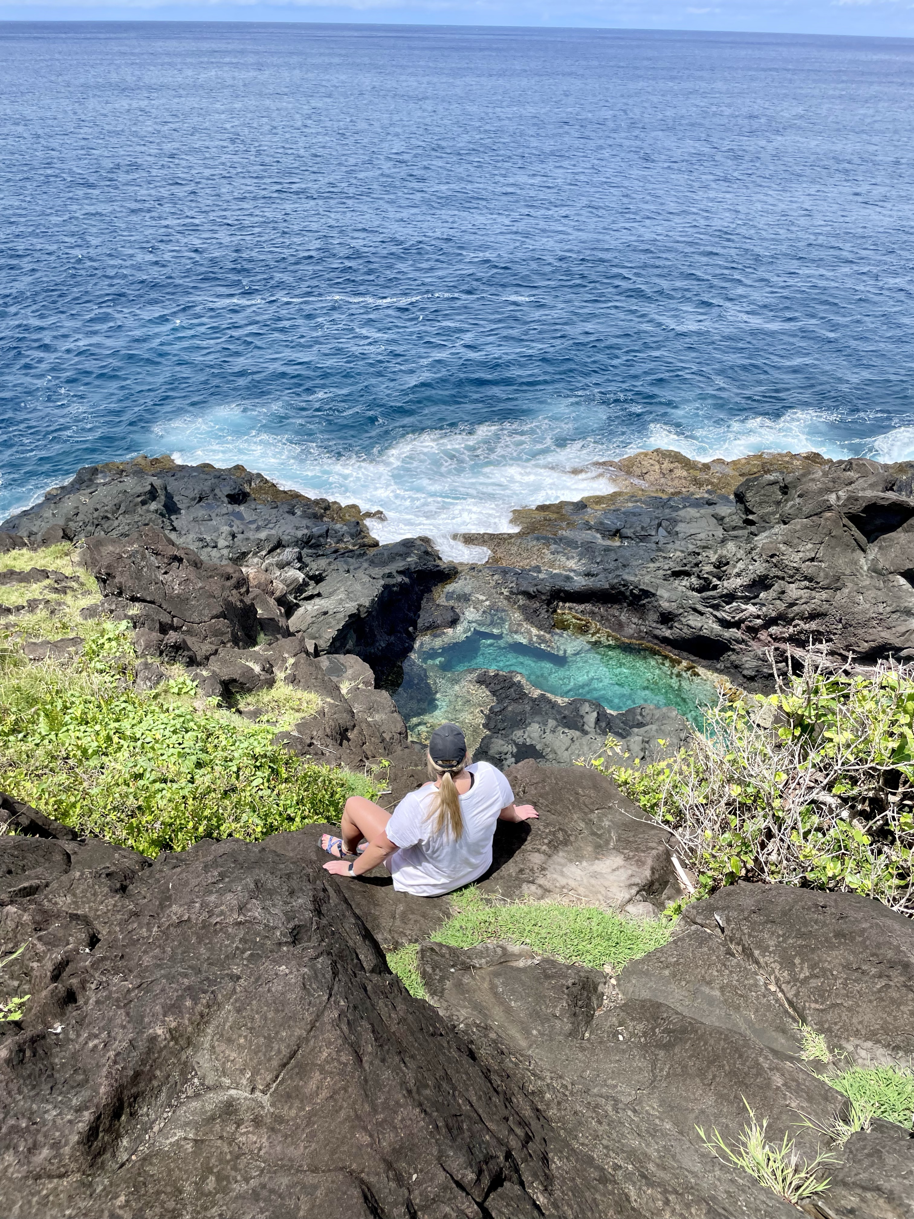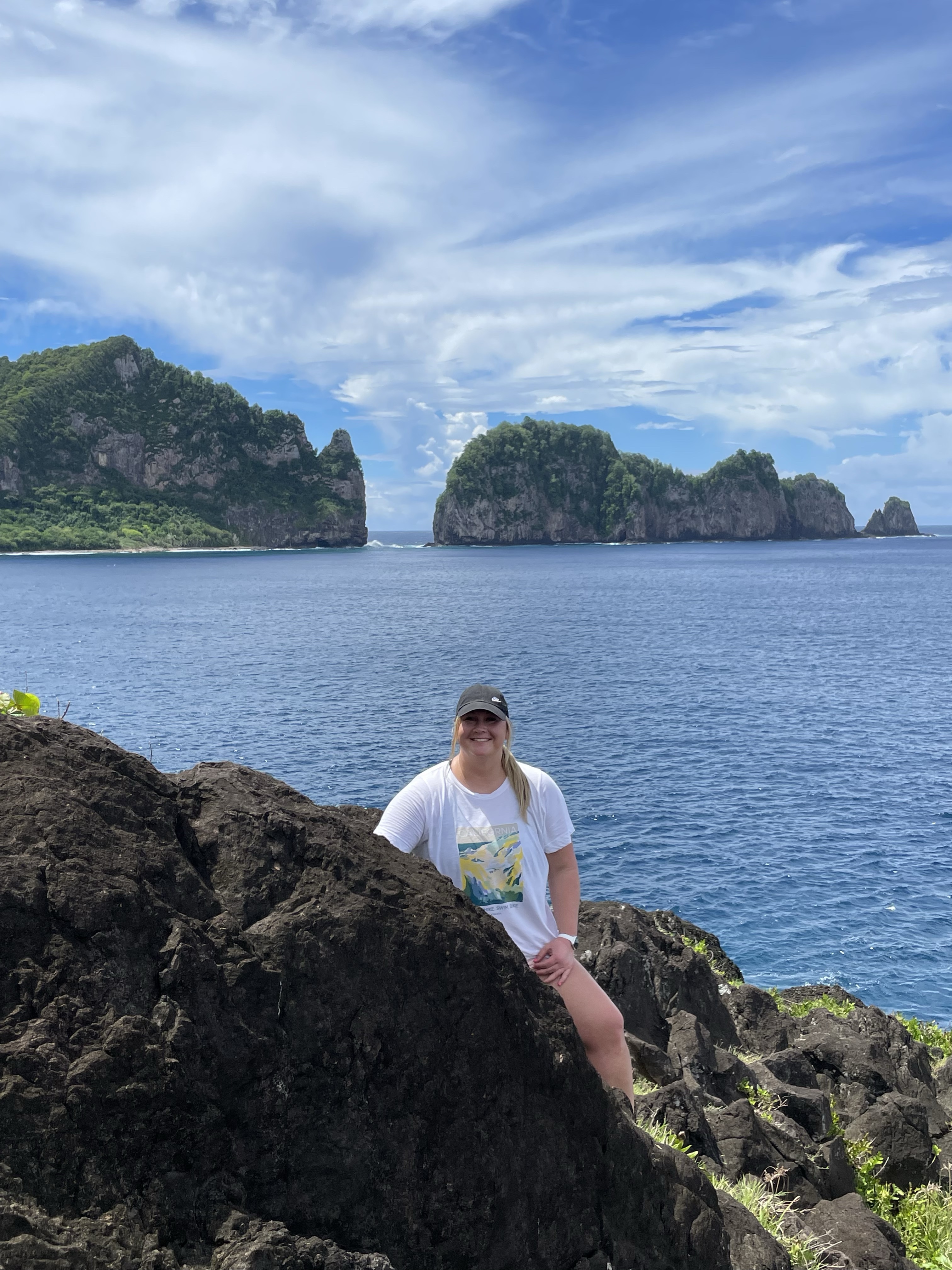 The next day, we planned to explore the island of Aunu’u. This island isn’t technically a part of the national park, but still very much worth exploring. To get to the island, you drive to the eastern tip of Tutuila and ask one of the boats waiting in the wharf to take you across. The boat ride costs $2 per person, each way, and is a relatively easy 10-15 minute ride. Once we got there, we walked down the road a bit before parking ourselves on the beach. Our plan was to spend the day snorkeling, however the tides made that quite challenging— it was difficult to even stand up in the water without getting knocked off your feet. We only lasted an hour or two before ultimately deciding to head back, but I’m still glad we made the trip!