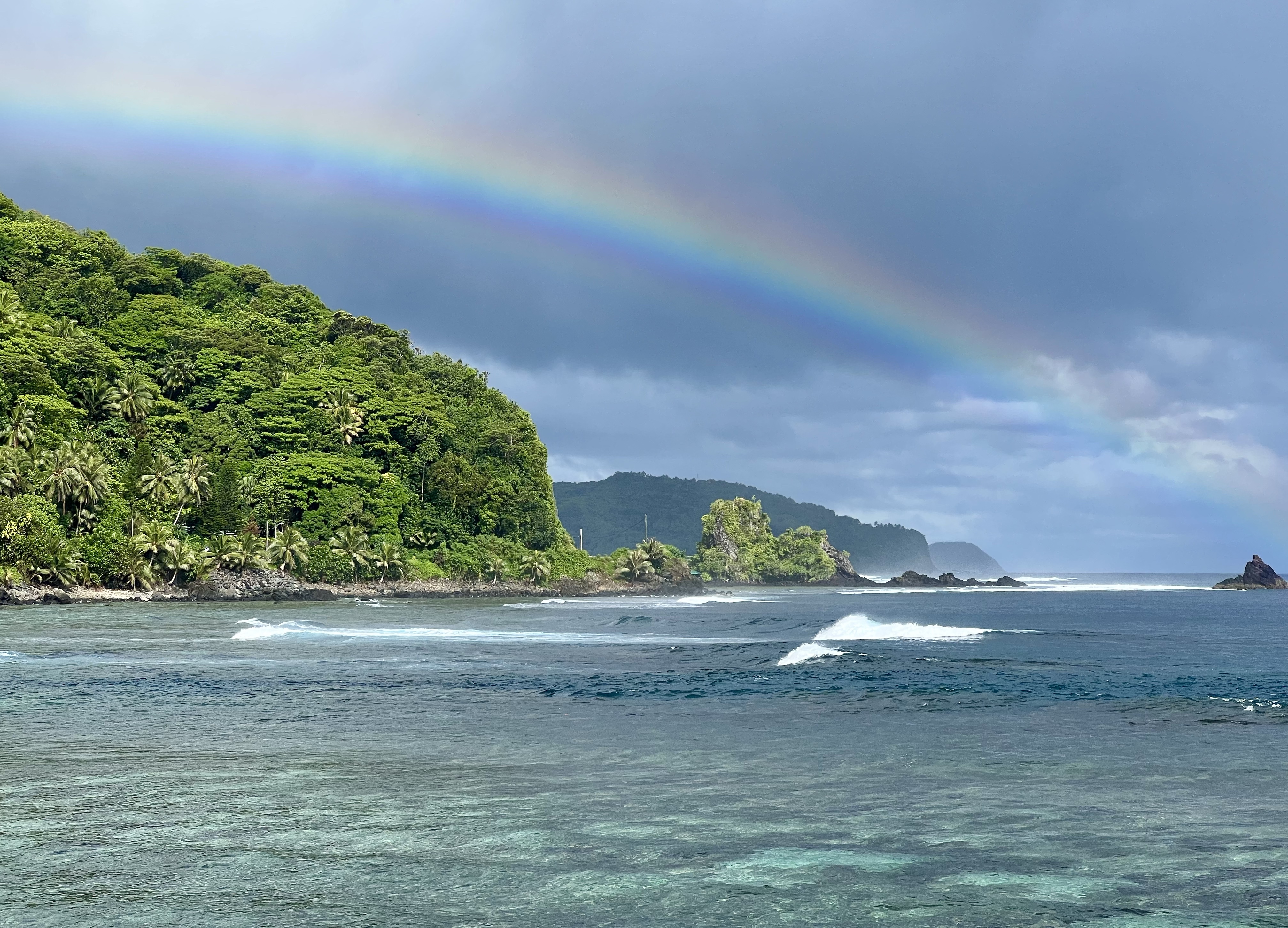 Our next full day on the island was Sunday. In the Samoan culture, Sunday’s are reserved for church and resting. Ranger Pa’i invited us to attend church with her, so that morning we met her at Capstone Assembly of God. The service was spoken in their native language, but everyone was very welcoming, and it was a great experience. We spent the rest of our morning on a driving tour of the west side of the island before finding ourselves back at Tisa’s for another amazing meal. A rainstorm came through right as we sat down to eat, with a stunning double rainbow following shortly thereafter. I swear, every day I kept pinching myself to make sure I wasn’t dreaming.